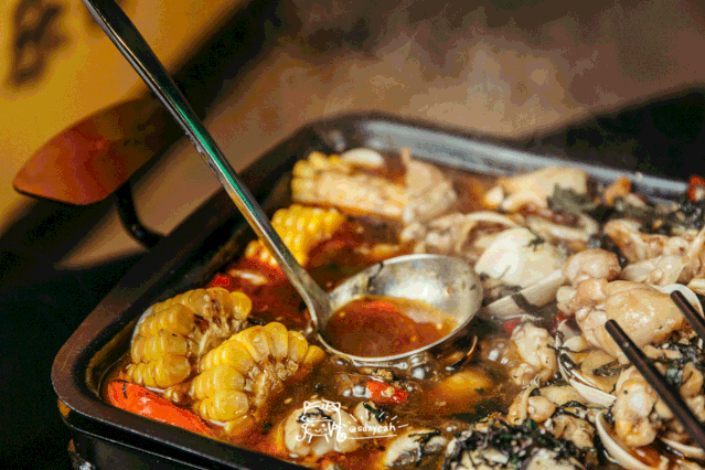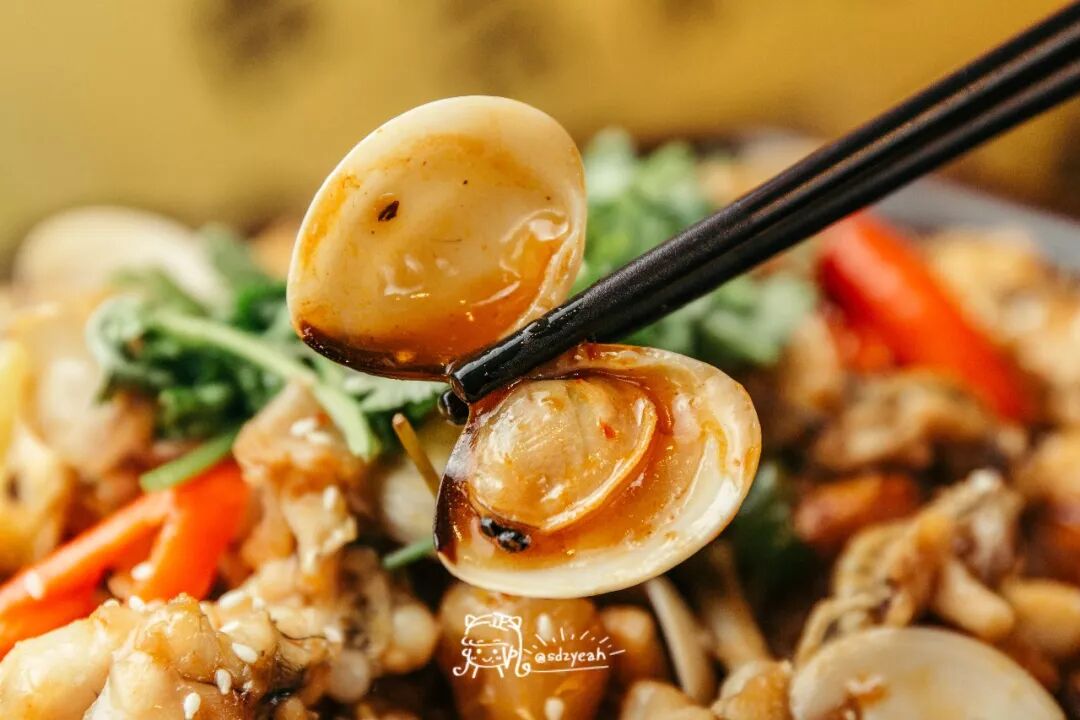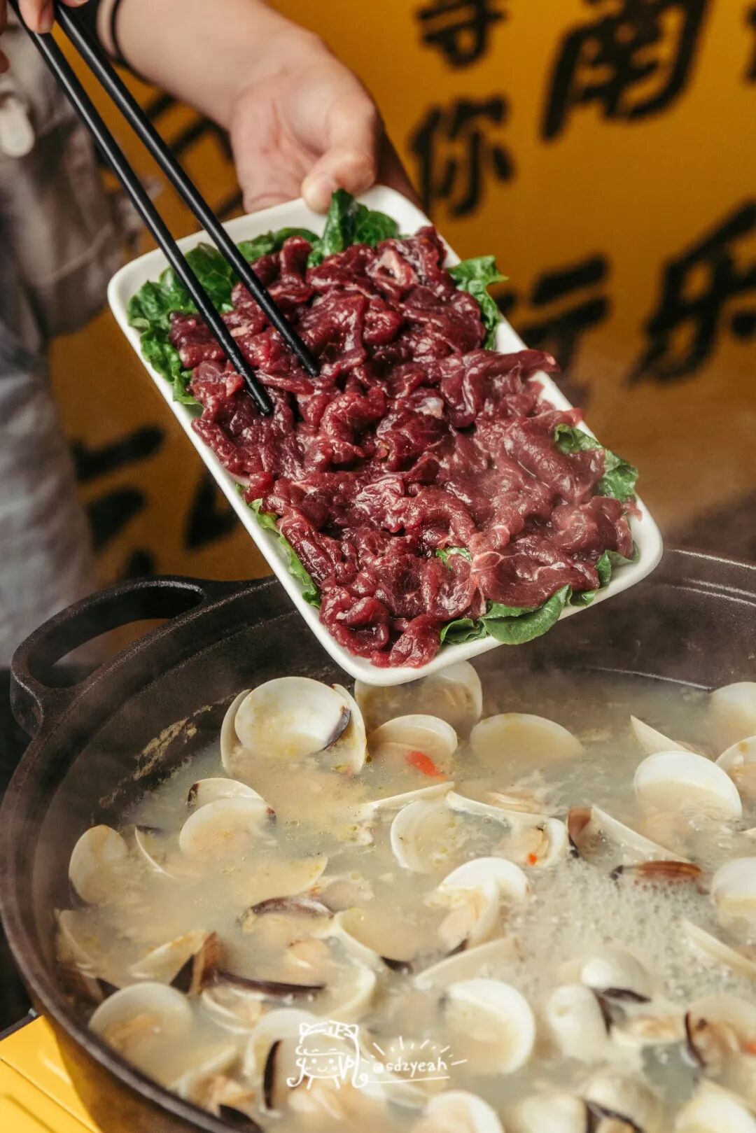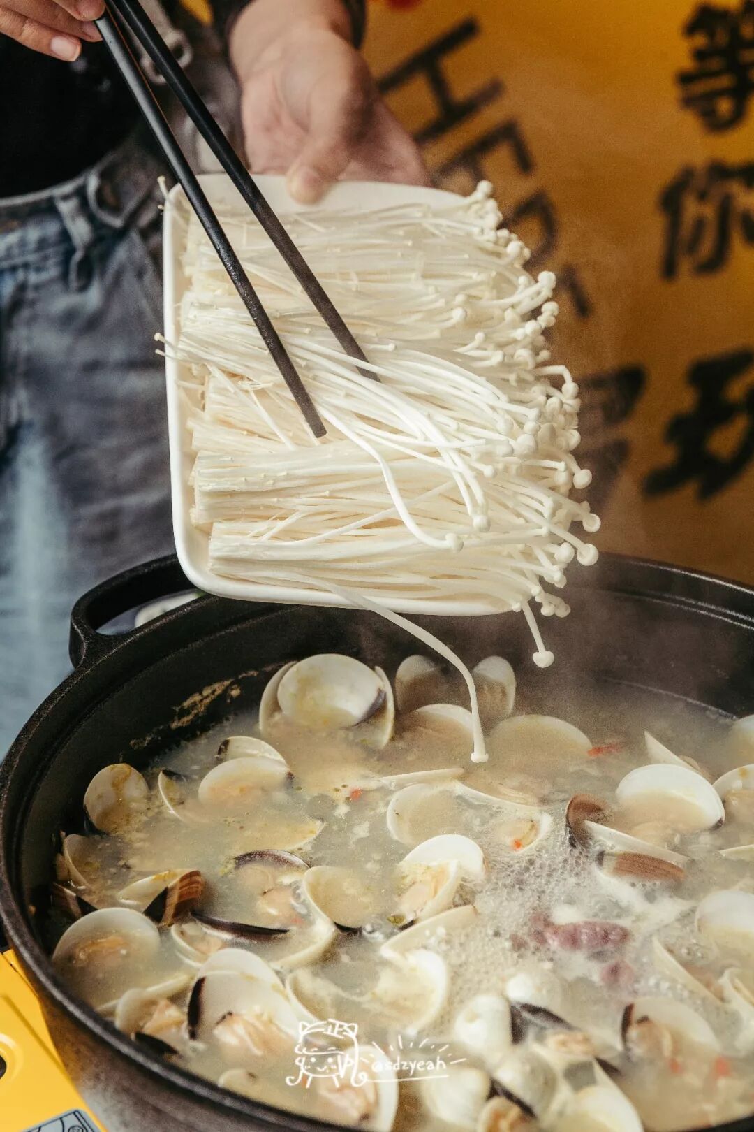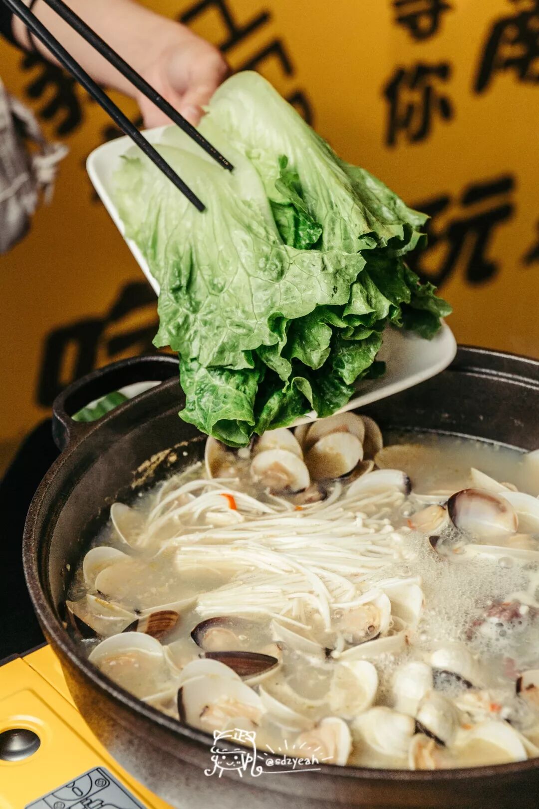 吃完贝壳不要着急,如此鲜香的汤汁又岂能浪费!点上配菜涮起来!