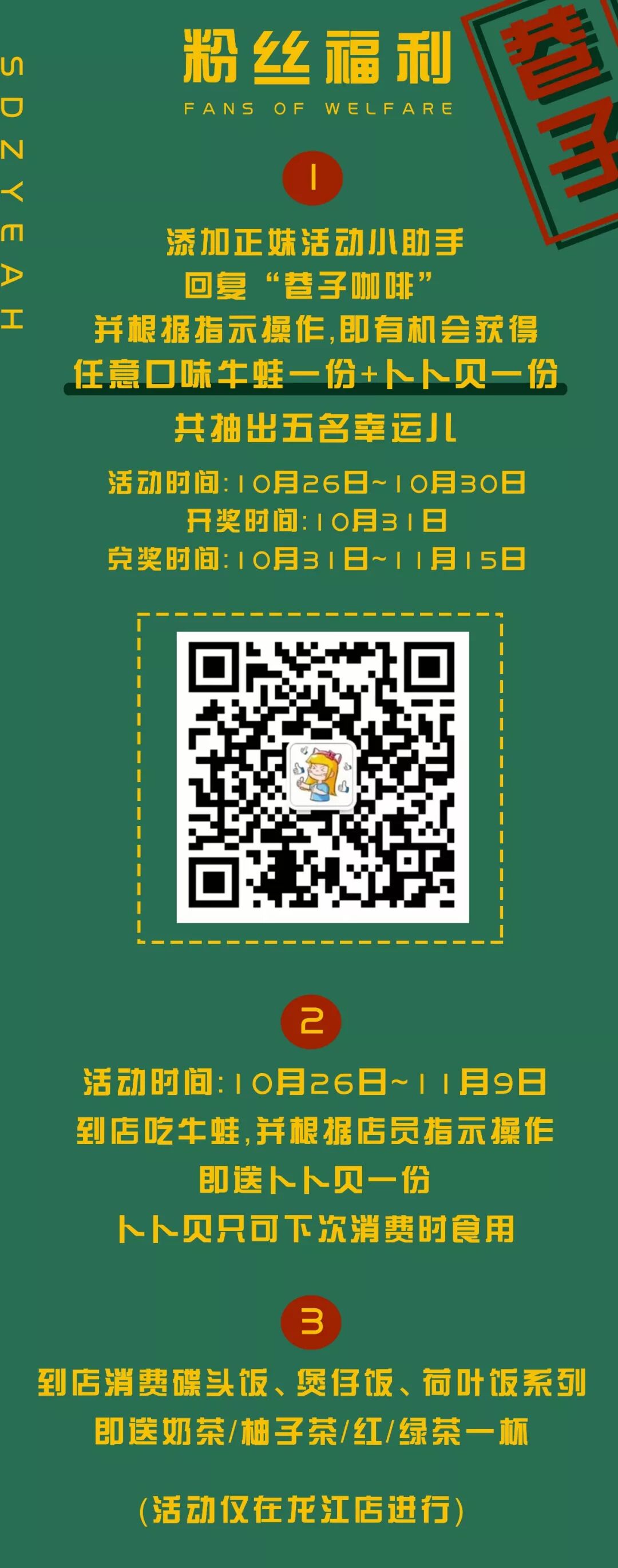 牛蛙上的卜卜贝吃不过瘾?现在吃牛蛙就会免费送一份卜卜贝啦!