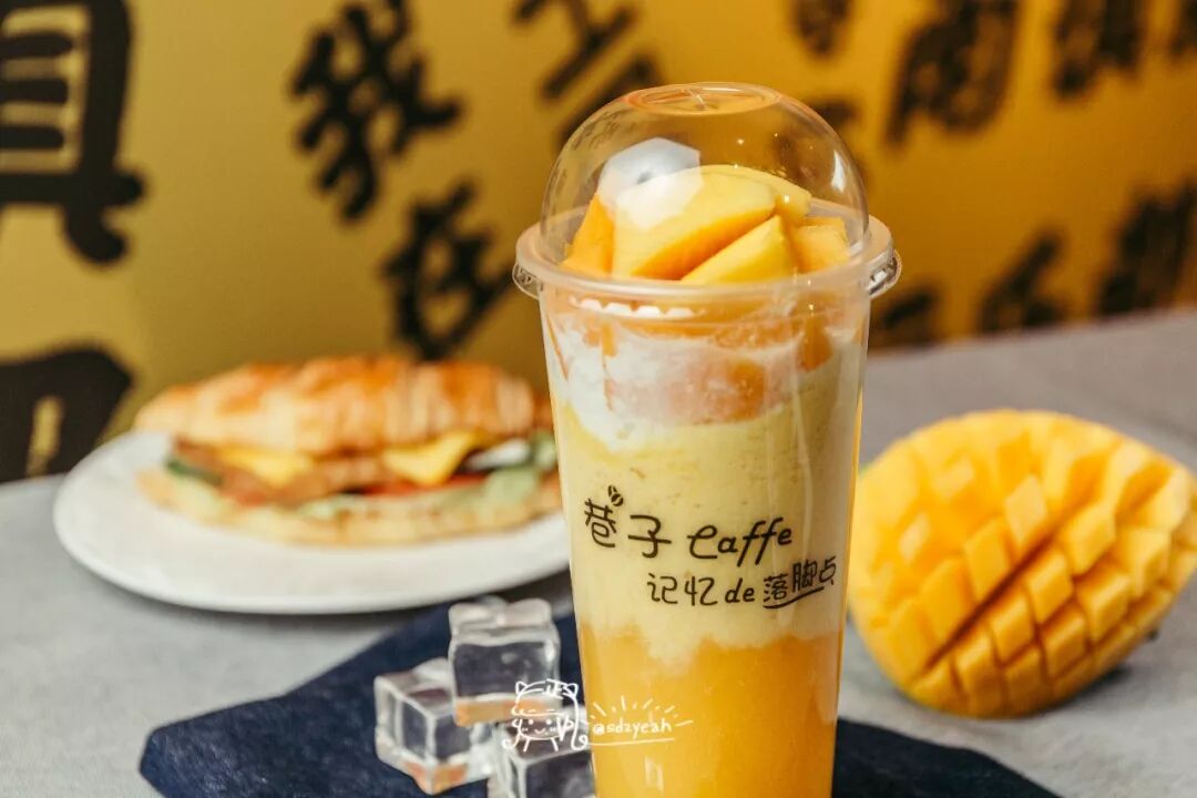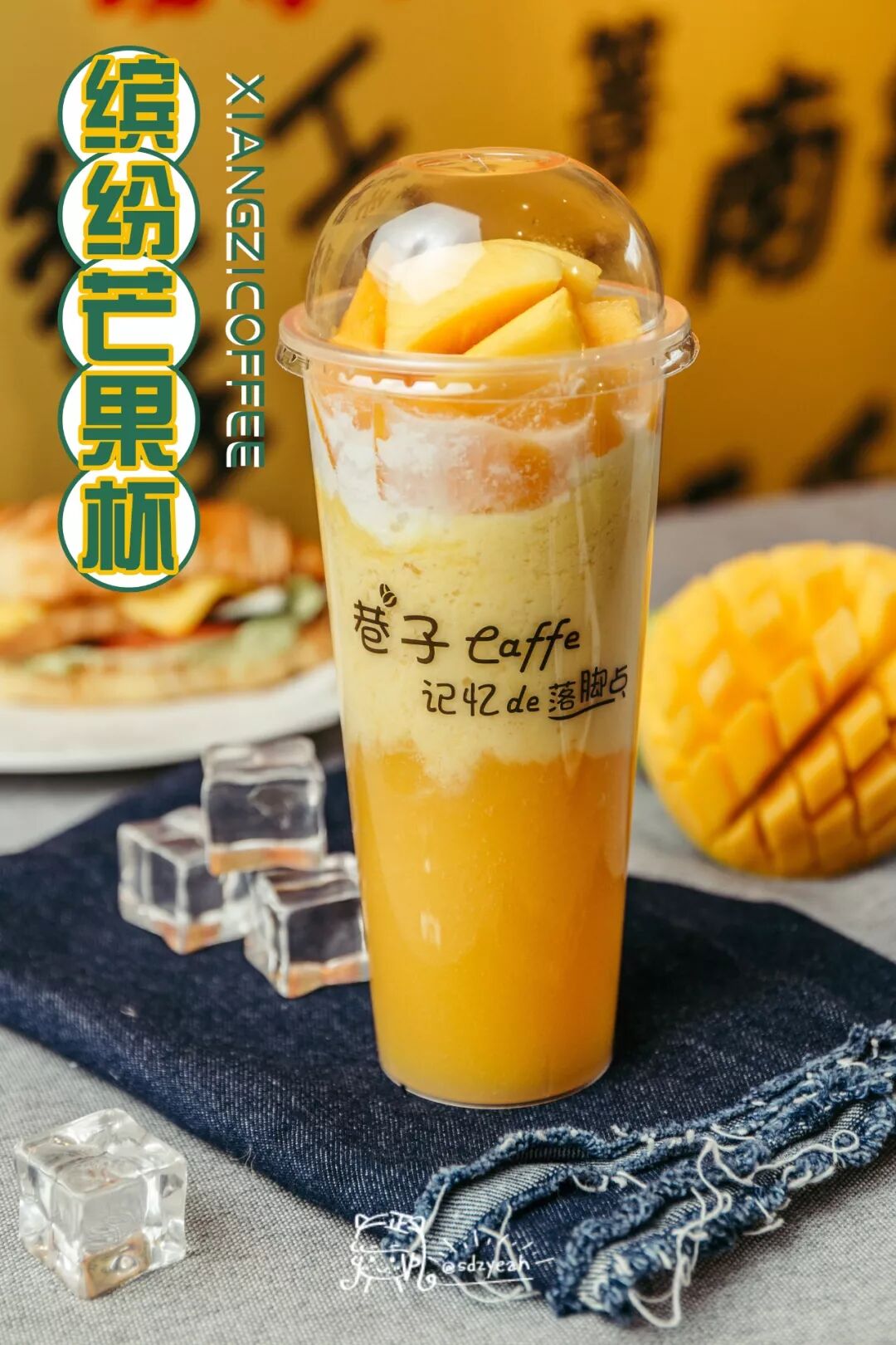 用芒果榨汁+酸奶+奶油打造成的芒果杯,每一口都香浓有料。