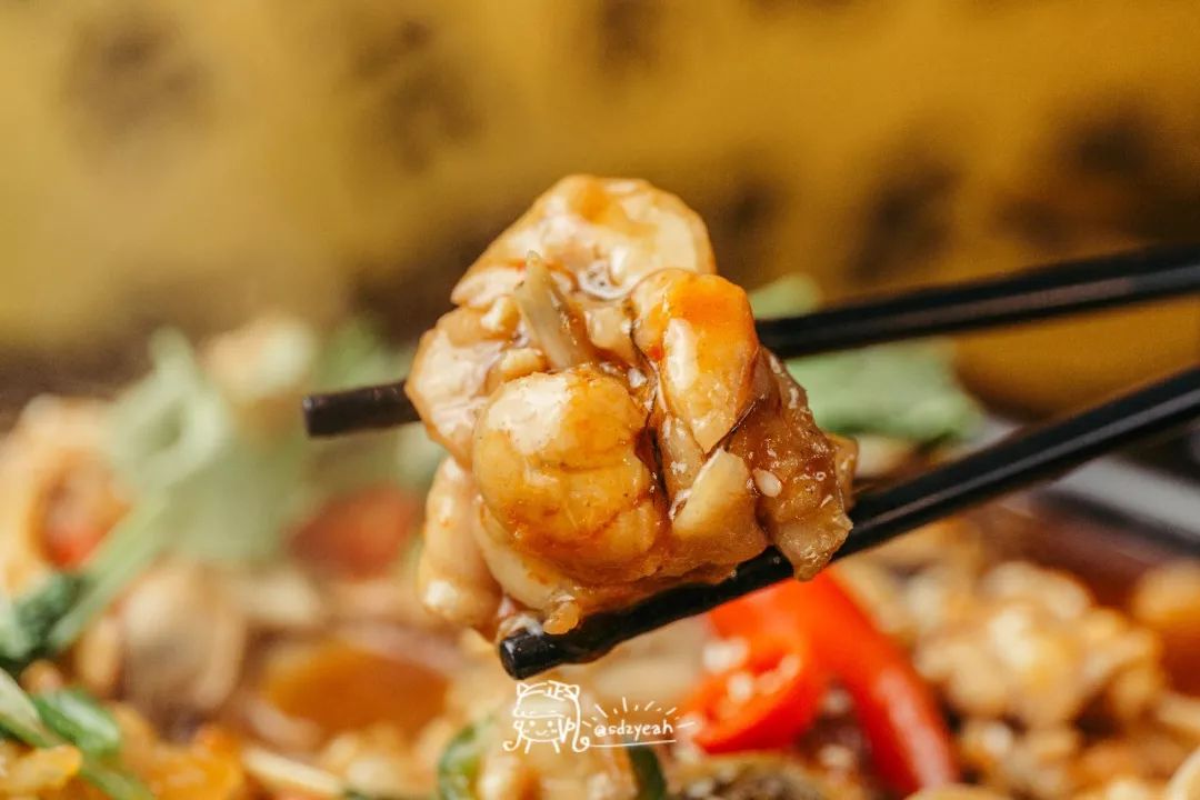 灯笼泡椒释放出酸爽垂涎的香气,蛙肉吸足了汤汁,细腻滑嫩,一抿就脱骨。