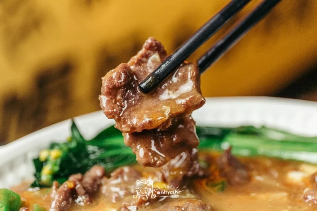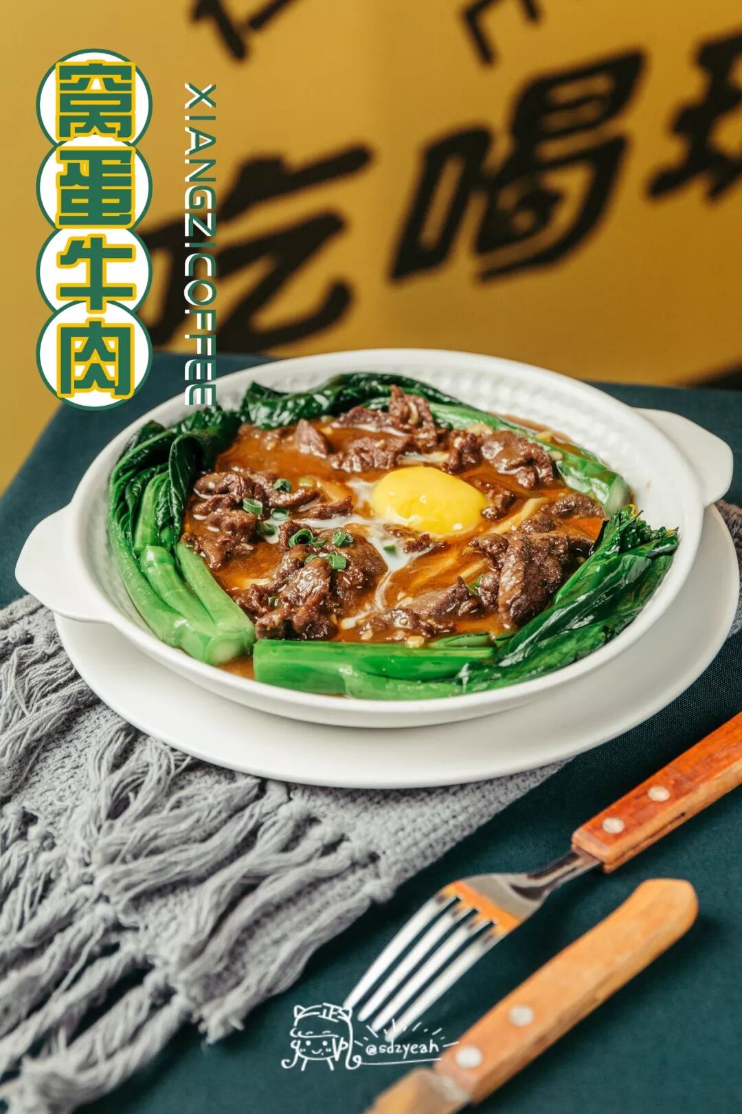 这份牛肉,中间的窝蛋是精髓,食用前要轻轻划开,感受蛋液满满流出的快感。