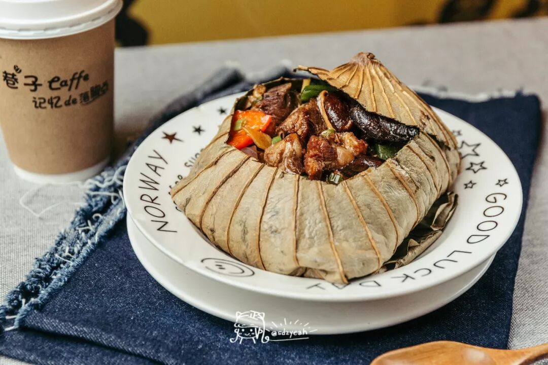 这份荷叶饭上桌居然真的带着荷叶,用荷叶包着饭居然还有点可爱。