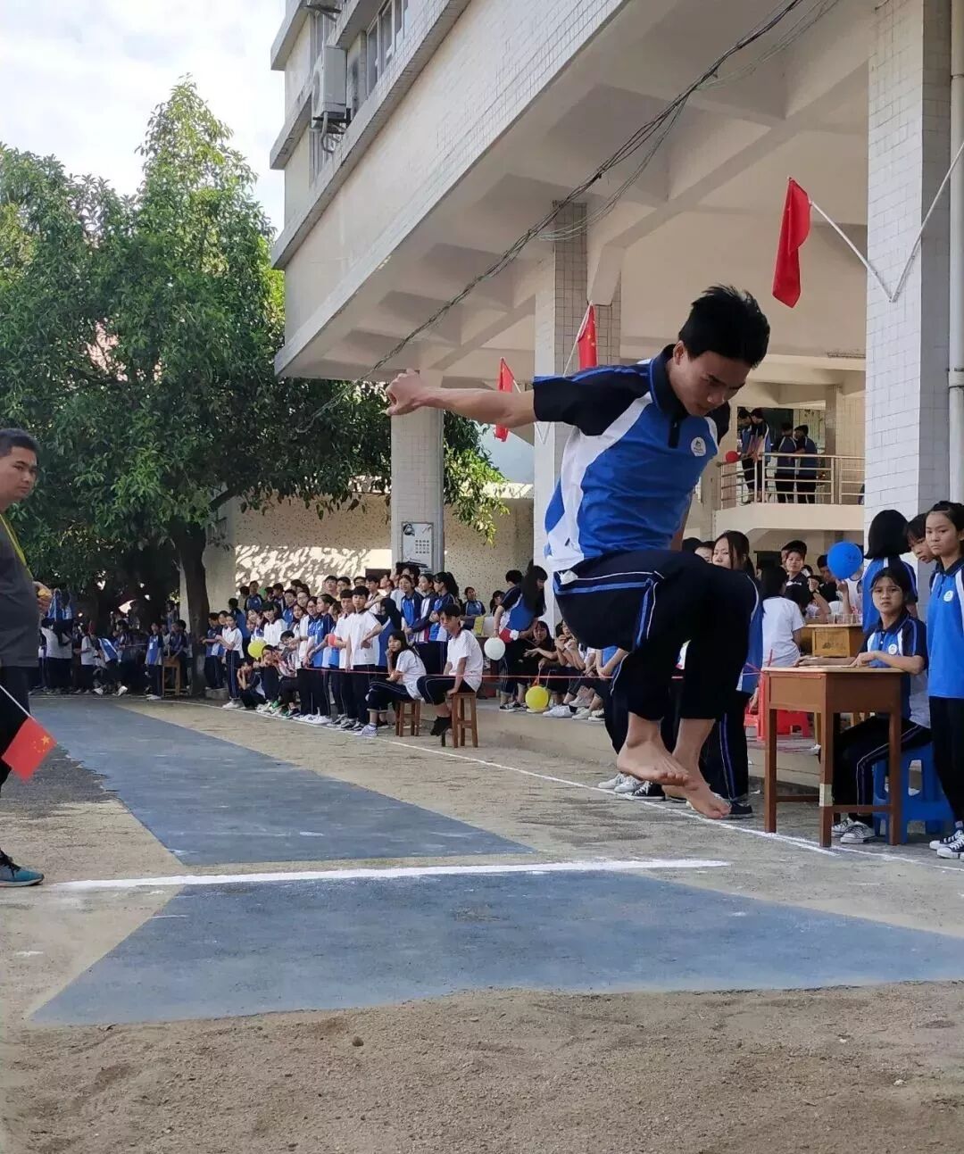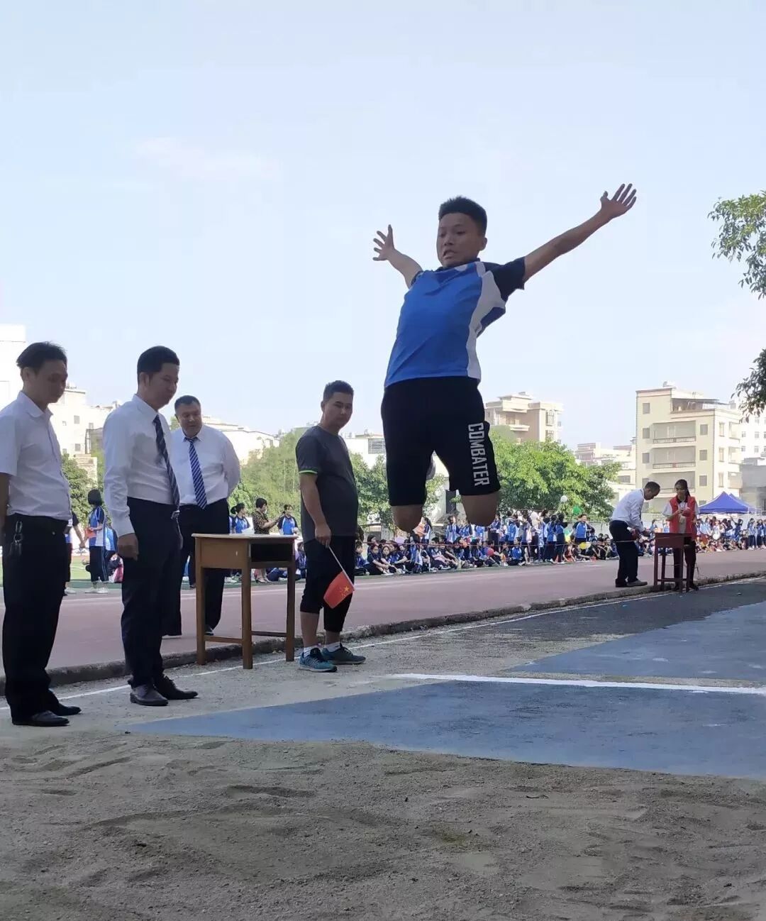 跳远场上,运动健儿助跑、踏跳、腾空、落地,那是青春激情的身影。