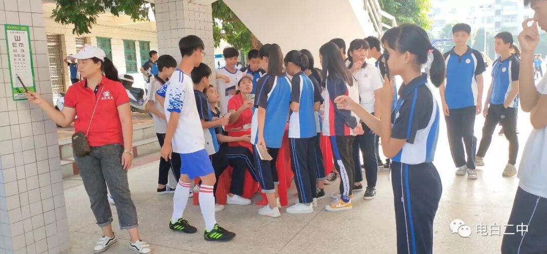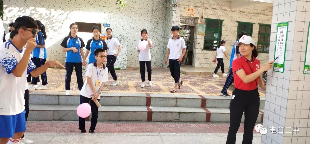 晶亮眼科视光(沙琅店)工作人员到现场为同学们测视力,讲授用眼卫生知识,还派发小礼品。