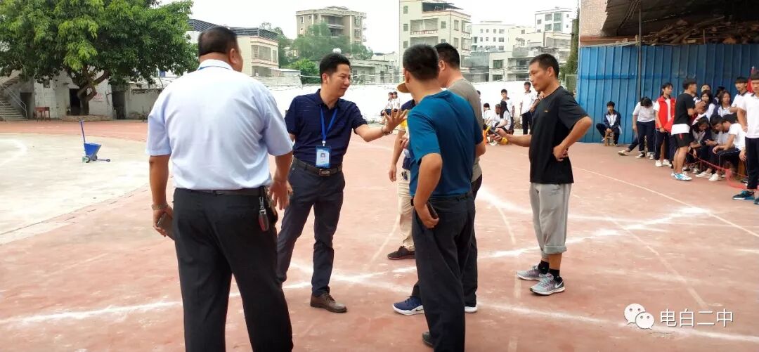 运动场外,班主任为本班运动运进行赛场指导,激励他们超越自我,挑战极限。