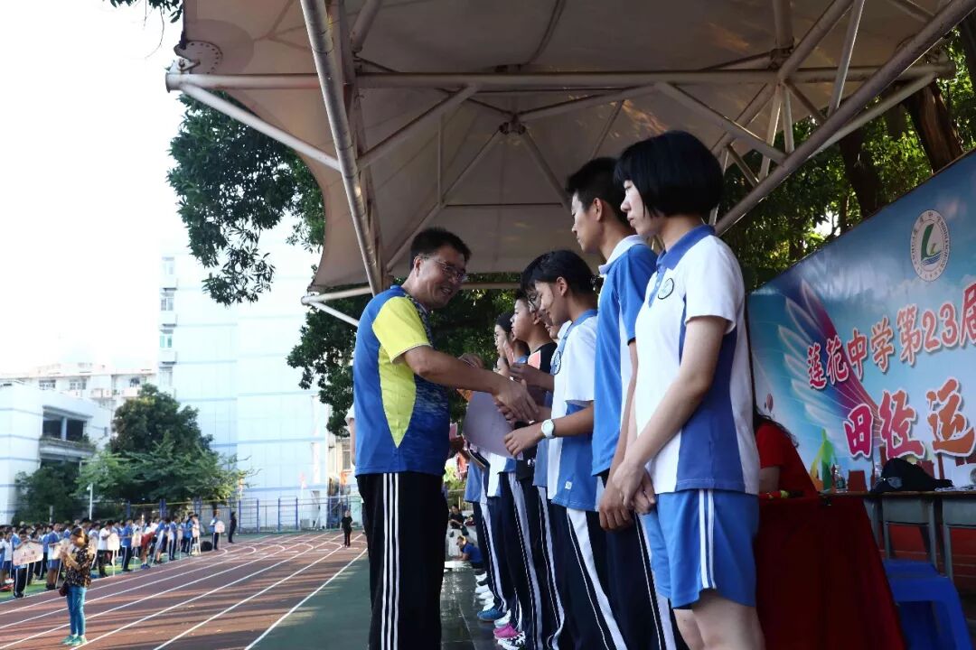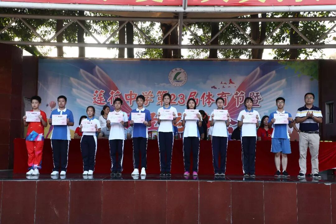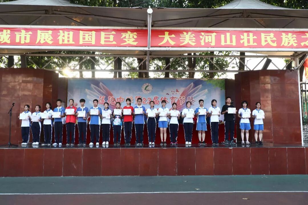 10月24-25日两天,莲花中学北校区第23届运动会进行了100m、200m、400m、女子800m、男子1000m、跳高、跳远、实心球等十余个个人项目的比拼,还有4*100m接力、仰卧起坐、引体向上、半场来回运球上篮、25米足球绕杆、三分钟“8”字跳长绳、广播操比赛等集体项目的竞赛。除团体总分表彰外,学校还进行了“入场式最佳风采班级”、“优秀宣传班级”、“精神文明班”等的表彰。