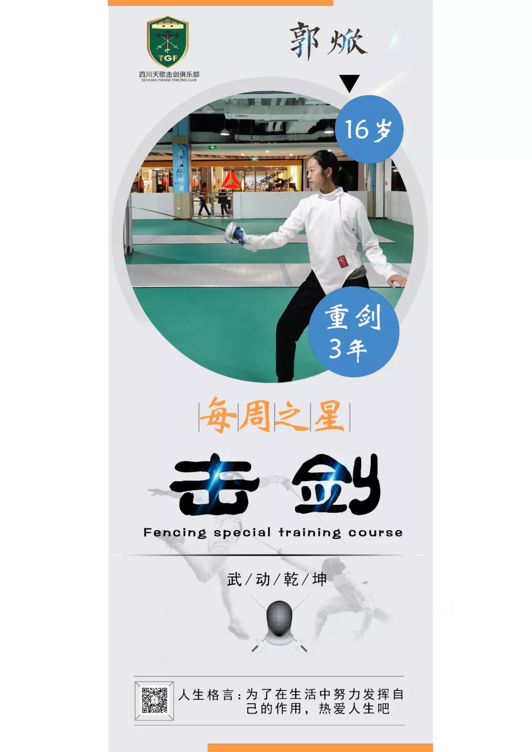 郭焮同学现就读于成都铁路中学校,曾获得2018年全国中学生击剑锦标赛 女子重剑团体亚军........