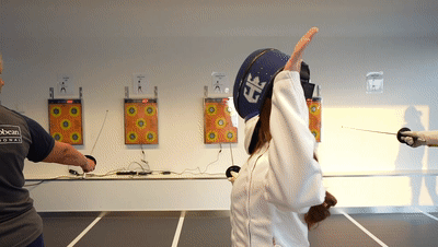 穿戴好专业击剑服饰之后,瞬间觉得自己有范儿了,虽然因为脑容量不太够,到最后都没怎么记住教练教的几个口号对应的动作,但是两两对决的时候气势一定要强,别害怕,说不定最终赢家会是你哦~
