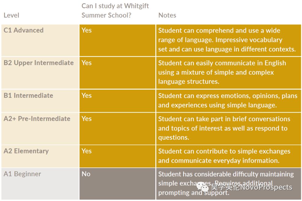 夏校为11-16岁的英语水平在A2以上的学生(英语至少学习2+年)提供2-6周的课程,每班不超过12名学生。上午为英语语言课程,下午为互动英语课程和俱乐部选修活动。(英语教学时间为23小时/周,按学生的英语水平分班,老师会每周发布学生的学习进展报告)