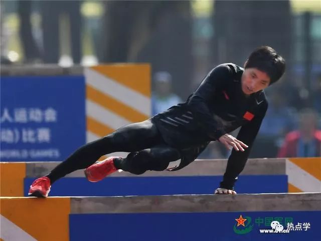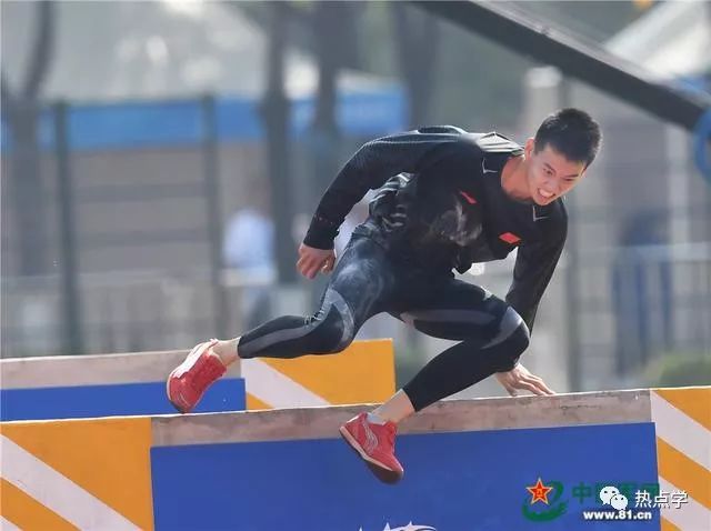 李明昊在空军五项障碍跑比赛中。王传顺摄