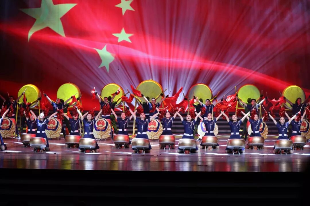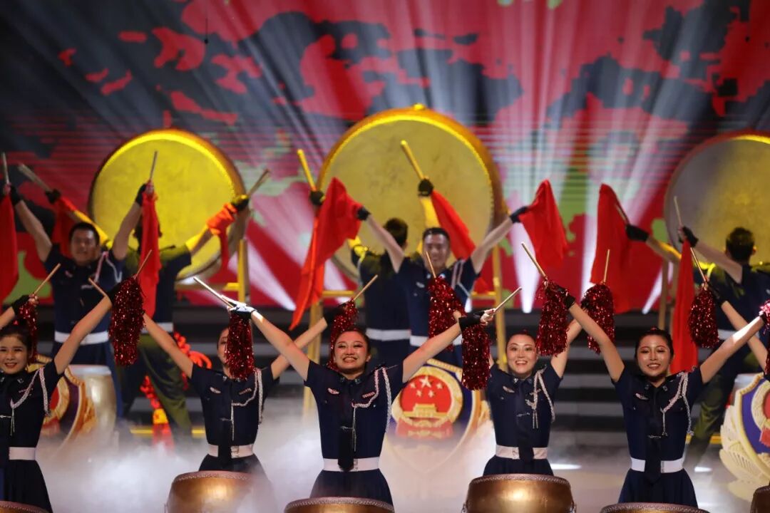 《鼓舞飞扬耀警营》通过大中小32面鼓不同击打变换,配以自编舞蹈,充分展现了铁路公安无私奉献的家国情怀和昂扬向上的警营生活,演绎了“世界名片”中国高铁的骄人成就,展现了新时代铁路公安队伍忠诚和担当!