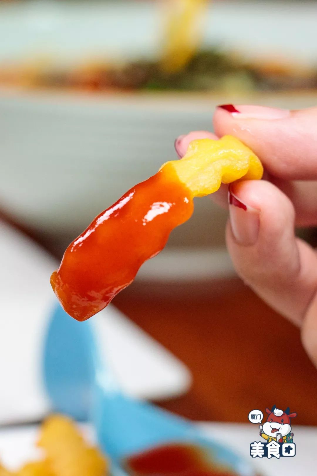 金黄酥脆的现榨薯条,一定要趁快吃。只要蘸上番茄酱,就让人一根接一根的,根本停不下来~