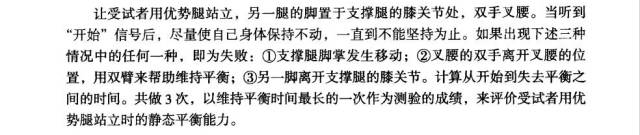 可用金鸡独立、头手倒立、睁闭眼静态平衡等来测试平衡素质。