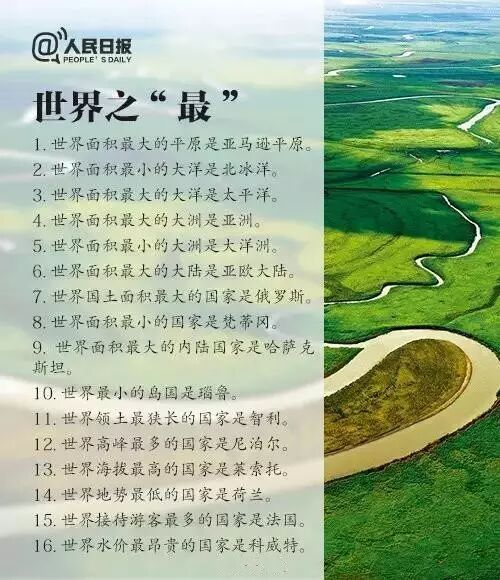 100100道世界地理常识题,刘老师替人民日报送给大家!