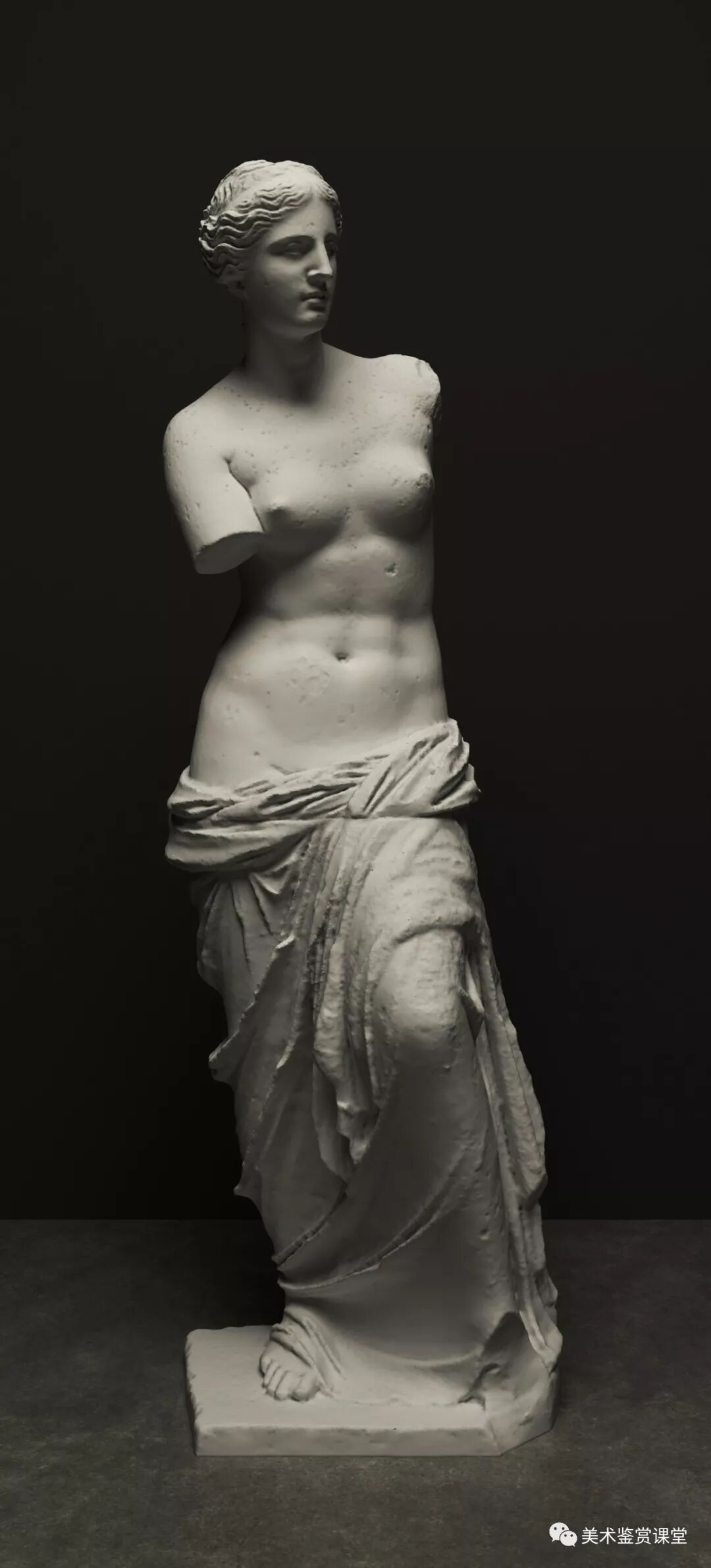 其实我在3ds max中模拟的那个场景,里面的断臂维纳斯模型是我从网上购买的,精准度极高,是国外专业人员用AI(人工智能)技术从断臂维纳斯原作上扫描捕捉的,用的是一种可以探测深度的专业摄像头完成的捕捉,基本和我们看到的断臂维纳斯一模一样,底座除外(底座是软件后期修复制作的)。