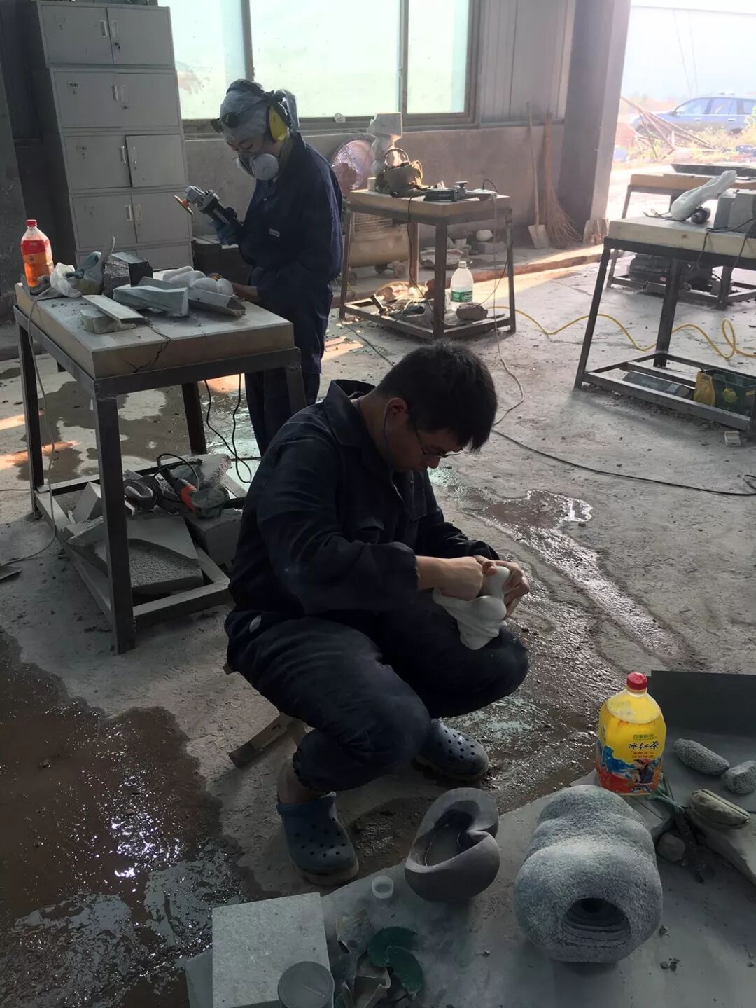 课程模拟国际石雕创作营模式进行,这样有助于调动学生个人荣誉感与使命感来完成作品。进入高温状态是创作课所需要的基本条件。教员与学生一样是创作营的一份子,同吃同住同工作。这样的教学有助于培养学生的尊严与独立意识。
