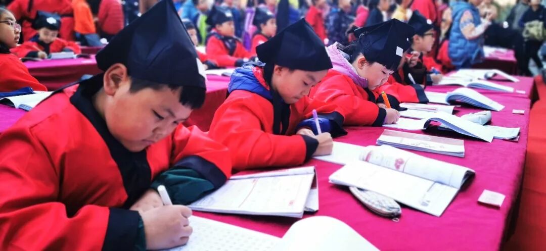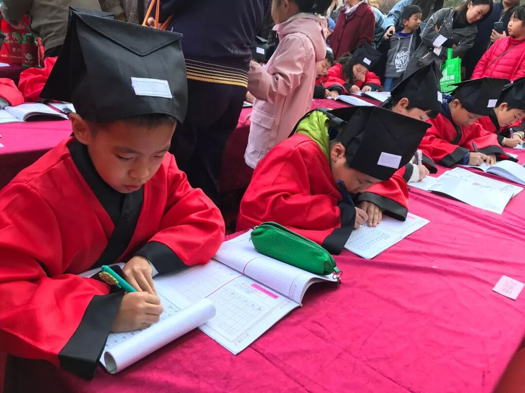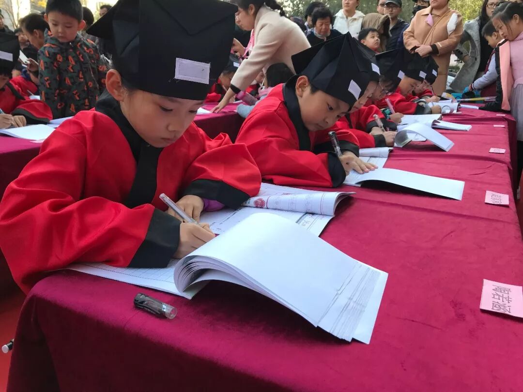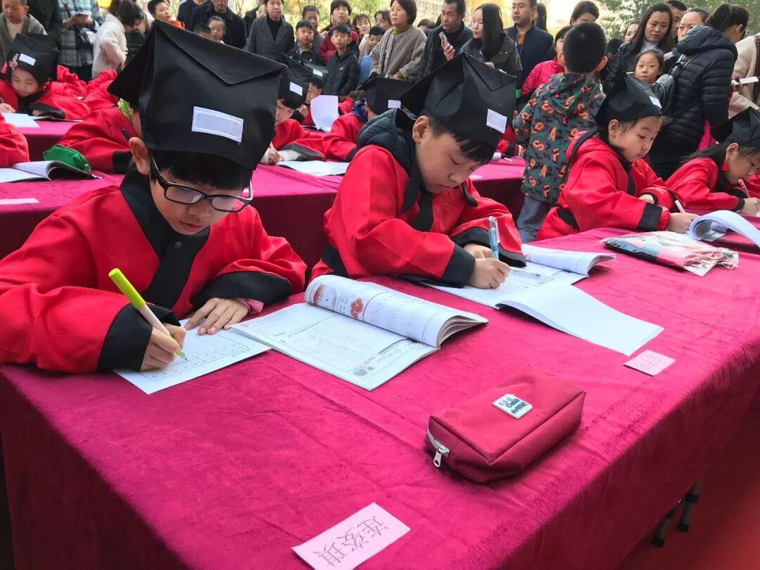 现场的小朋友们穿上了汉服,进行了一场古风书法现场书写,场面十分壮观引得众人围观点赞!下面就让我们看看今天的现场吧!