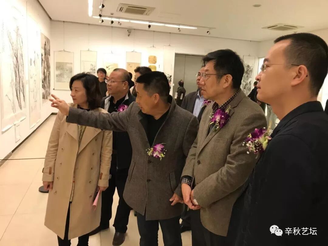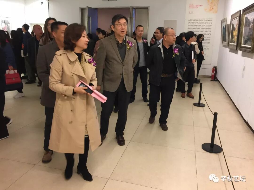 与会领导在徐州市美术教研员梁冬老师的陪同下观看老师们的作品,对教师作品赞许有加,徐州市美协副主席庄洪生先生及徐州市书画院梁雨博士从专业角度对本届展览中的参展作品给予了高度肯定,并针对老师们的专业发展给出了建设性的意见!