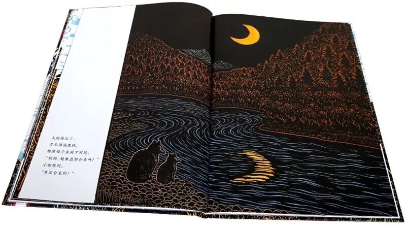 ▲《棕熊之秋》版画绘本,第一次抓鱼的小棕熊最后捉到鲑鱼了吗?在这个温情的小故事中,我们能感受到勇气和鼓励的力量。
