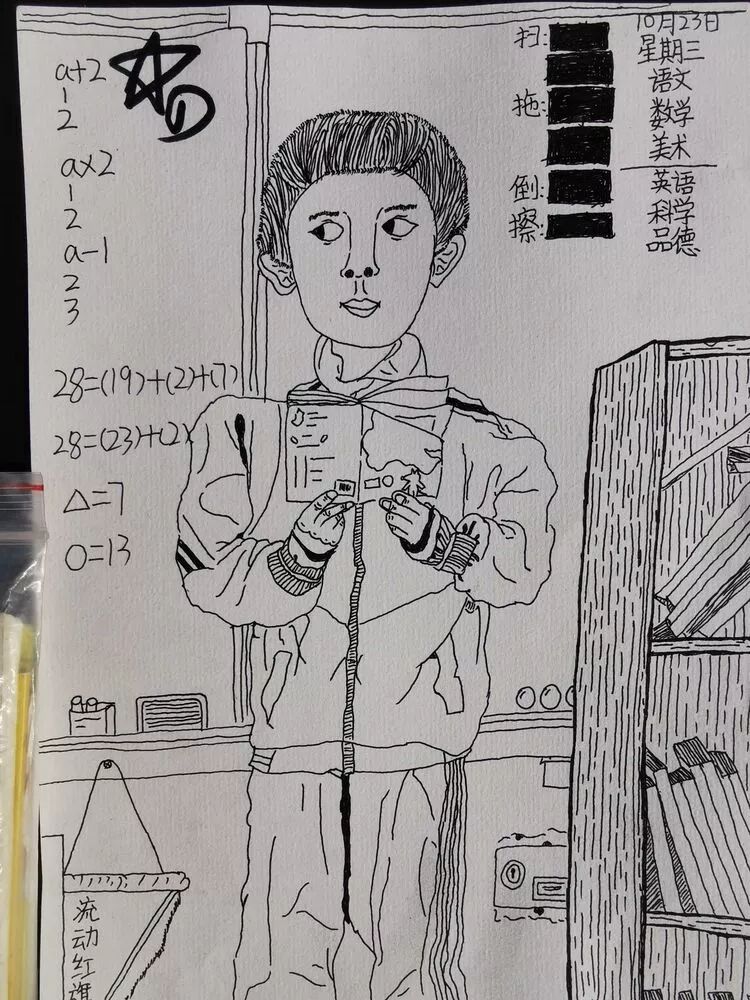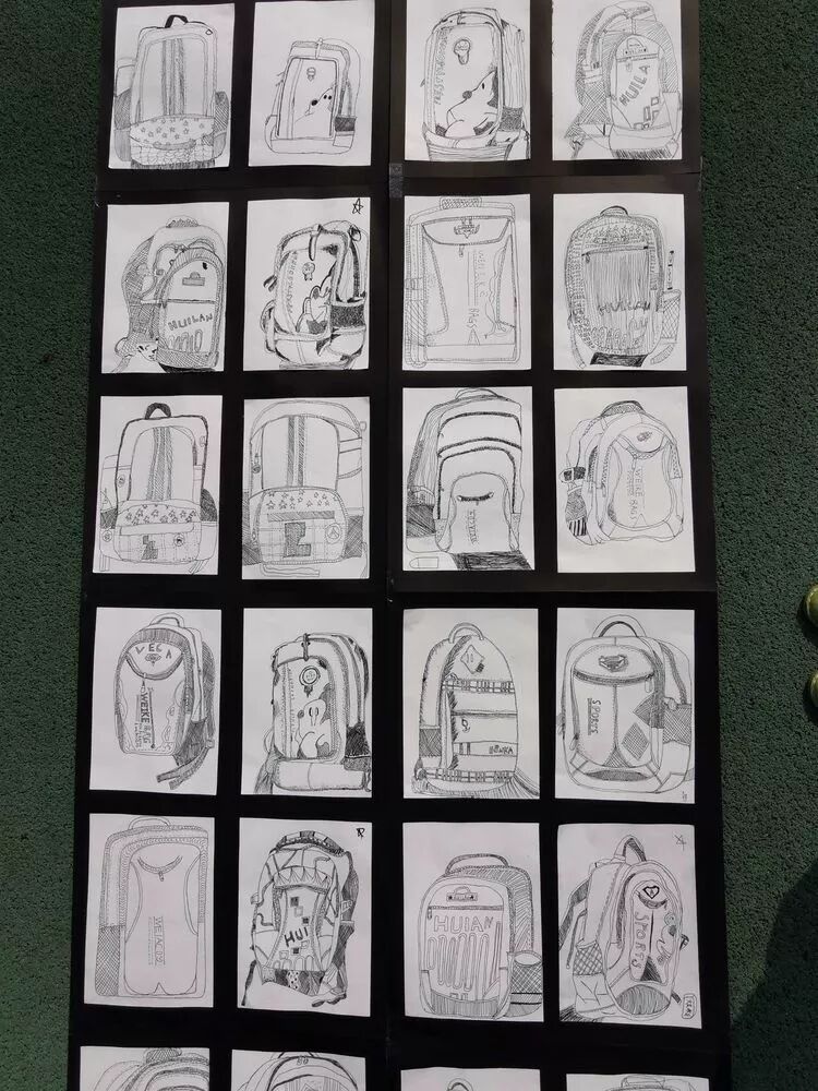 三四年级以线描书包写生为主题,各个都大展身手,毫不逊色,棒极了