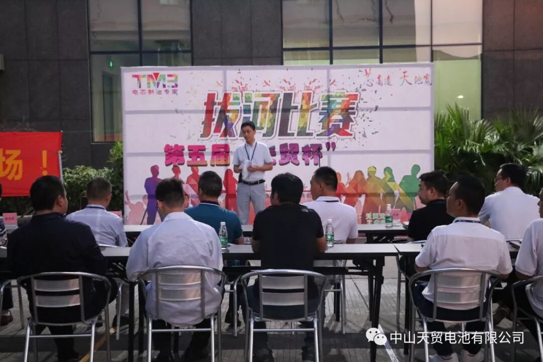 第五届“天贸杯”拔河比赛于2019年10月25日拉开帷幕。本次比赛有11支代表队,他们分别来自于:事业一部检测、包装部的众志队;事业一部注液部的炫阳队;事业二部电极装配部的先锋队;事业二部化成部的奇迹队,事业二部检测部的二部检测队;PACK聚合物部的聚力小组;PACK铝壳部的齐心队;事业三部的超越队;STM生产部的野狼队;五金部的天高代表队以及我们综合部的综合队。