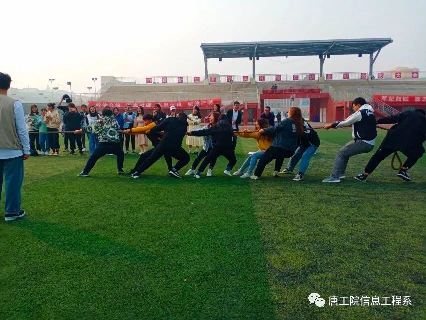 10月23日24日,信息工程系文体部于足球场南侧组织举行了“拔河比赛”,此次比赛以各班为单位,共组成13支队伍,每队10人,男女均为5人。比赛实行淘汰制晋级方式,抽签分组决定比赛顺序。