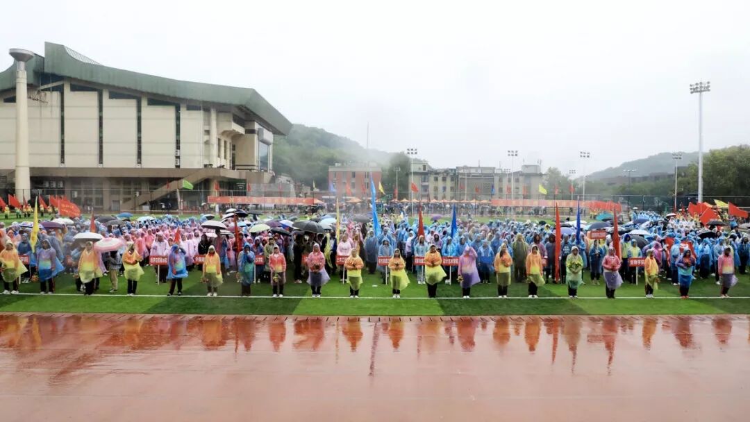 伴随着激昂的运动员进行曲,国旗班、鲜花方阵、红旗方阵、各单位运动员方阵等依次入场。方阵步伐整齐、口号响亮、不畏风雨,昂首阔步走入赛场,充分展现了学校师生精神饱满、积极向上的风采。