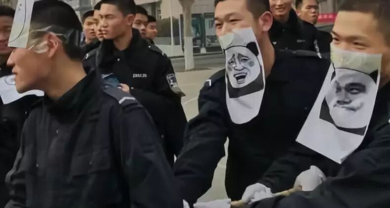 12月21日,河南警察学院某系举办拔河比赛,一组队员将表情包打印出来,做成面具戴在脸上,企图逗笑对手,现场笑声不断。一位学生称,开始是觉得好玩,没想到表情包还真起了作用,得了亚军。