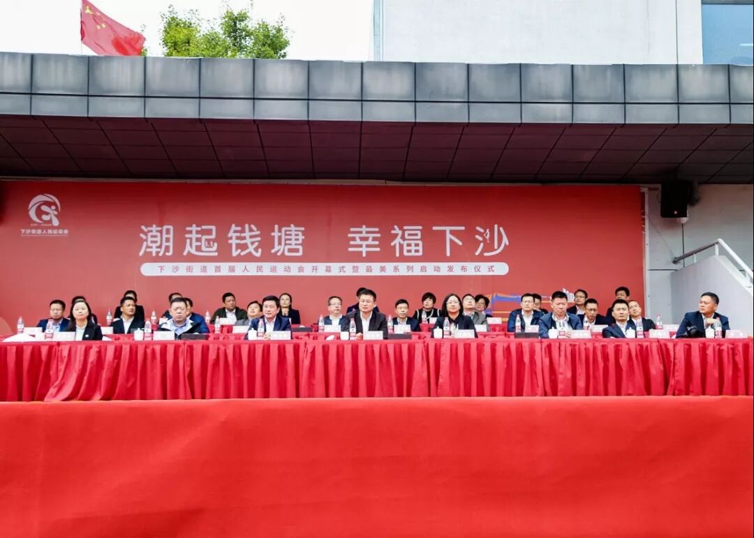 钱塘新区党工委副书记、管委会副主任陈金生;钱塘新区党工委委员、管委会副主任李国梅;钱塘新区党工委委员、党群工作部部长陈金泉;钱塘新区党工委委员、公安分局党委书记、局长戚海滨;区检察院党组书记、检察长钱铖等新区相关部门领导和各街道领导出席了本次活动。仪式上,李国梅致辞,陈金生宣布下沙街道首届人民运动会开幕!