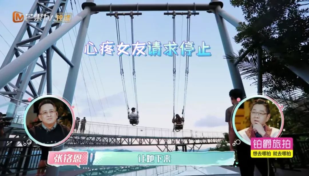 张铭恩此次女友“集训”点特意选在了呀诺达并为女友定制了克服恐高的项目哇哎噜玻璃观景平台和悬崖观海秋千