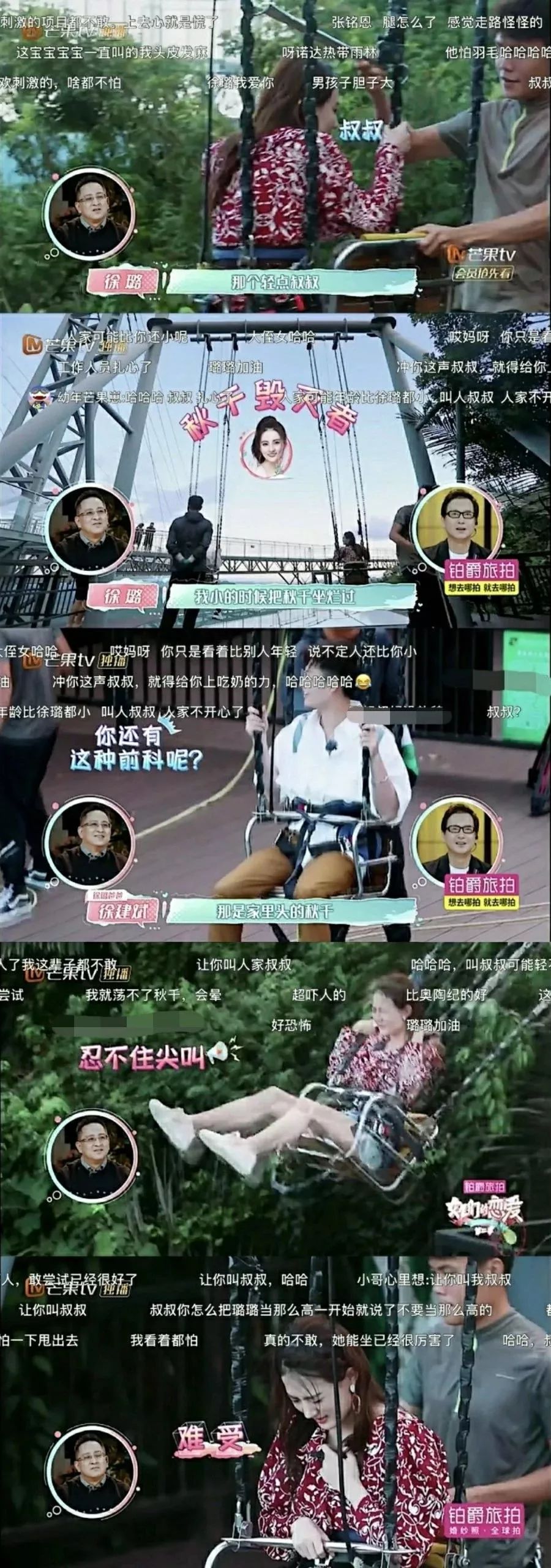 十分害怕的徐璐在坐上秋千前对旁边的工作人员说了一句话“那个轻点叔叔”