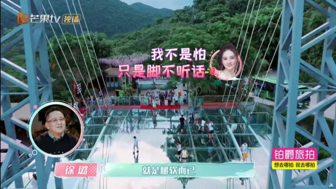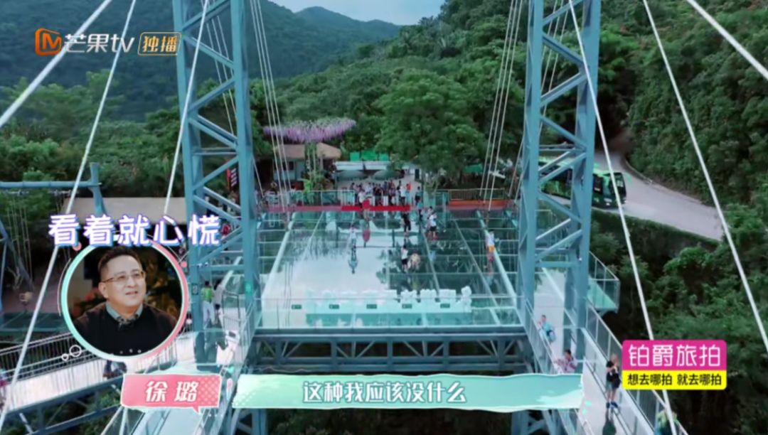徐爸爸也表现得有点心慌慌的样子行走在200米的高度落差、透明悬空的玻璃上时徐璐嘴上说着不怕,身体的颤抖却很诚实