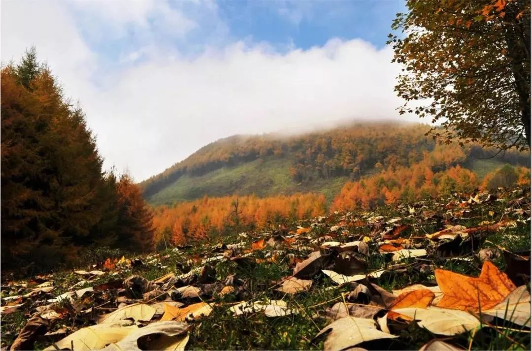漫山遍野金黄色的落叶松点缀着每一个山头,