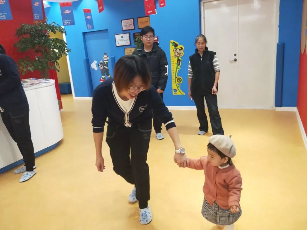 家长和宝宝完成了一系列的消毒工作老师会给每个宝宝