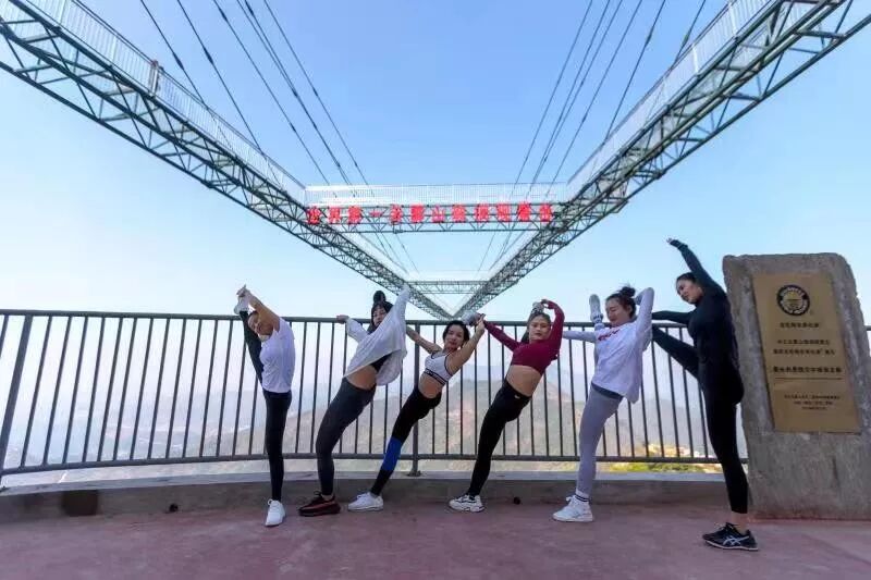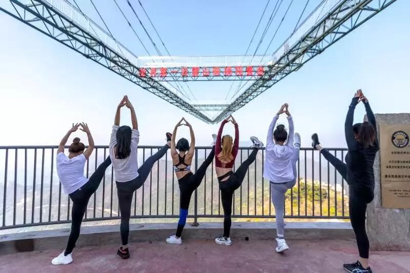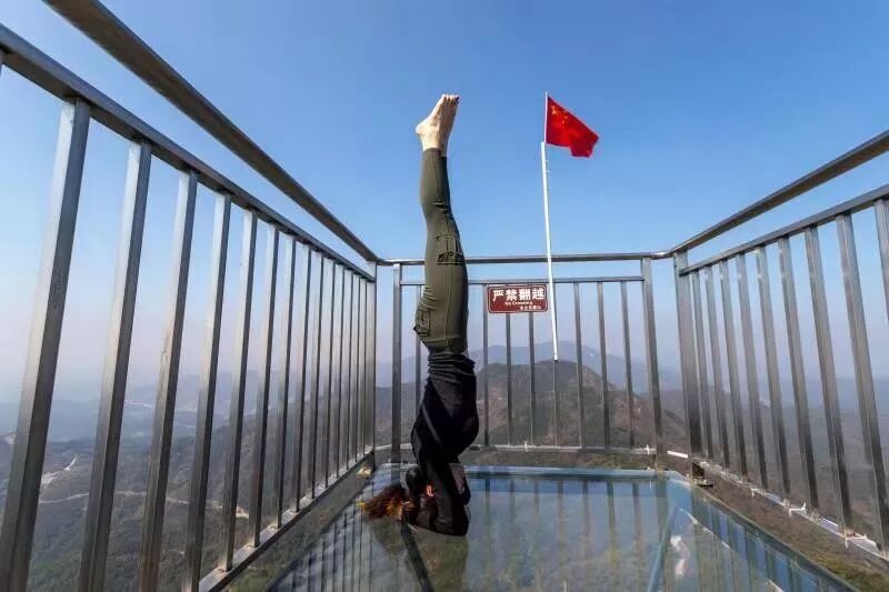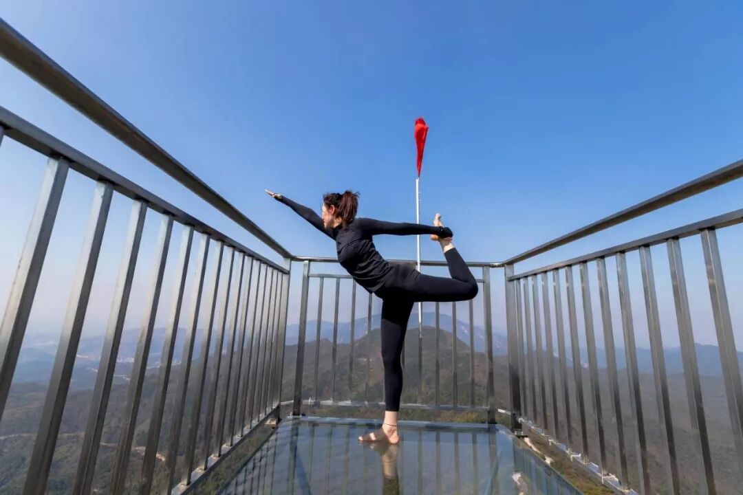 在武汉之巅玻璃观景台做瑜伽