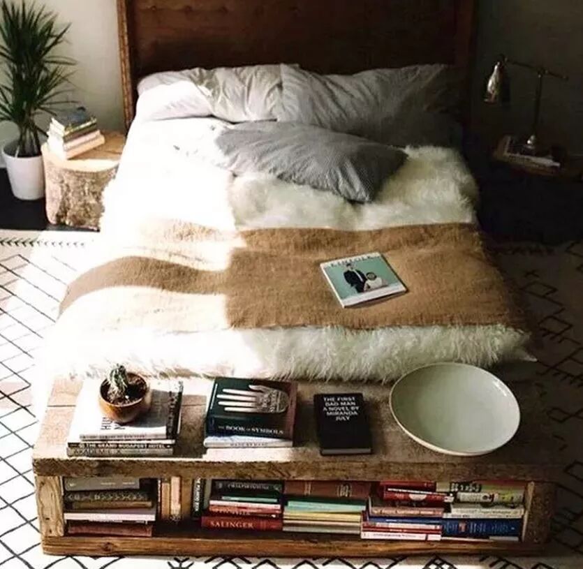 床尾凳上放些书本小盆栽啥的,两个人坐在上面喝点小酒聊聊天,多惬意啊!