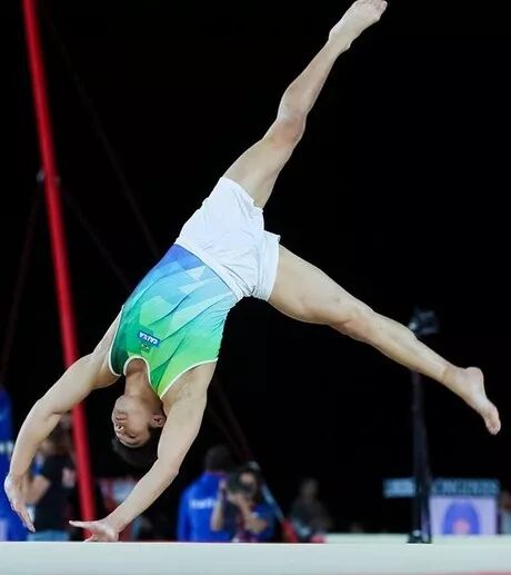 可他的赛绩并没有多突出,2015年入选巴西国家队,同年参加世界艺术体操锦标赛,并凭借“单杠”项目排名第四。2016年,在格拉斯哥世界杯个人全能比赛中,他获得银牌▼