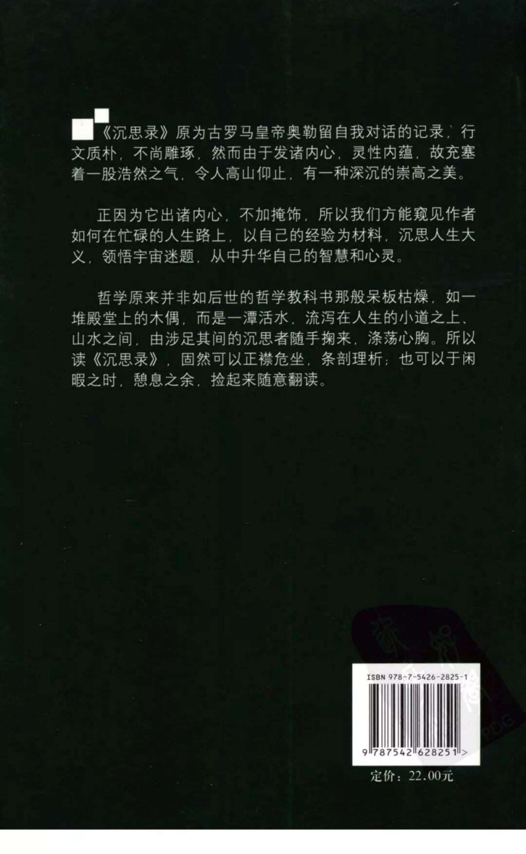 作者简介 · · · · · ·玛克斯·奥勒留(Marcus Aurelius,公元121—180) 古罗马帝国皇帝。为帝国之治夙兴夜寐,为平定兵患而征战四方,并最终死于军中。奥勒留在文学、修辞、哲学、法律、绘画方面均受过良好教育,利用政事辛劳当中的片暇记录与自己的心灵对话,为后世留下不朽的精神财富——《沉思录》。