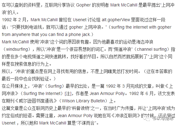 以上最早时期关于“网络冲浪”的解释源自@趣味科普吧主智慧中国