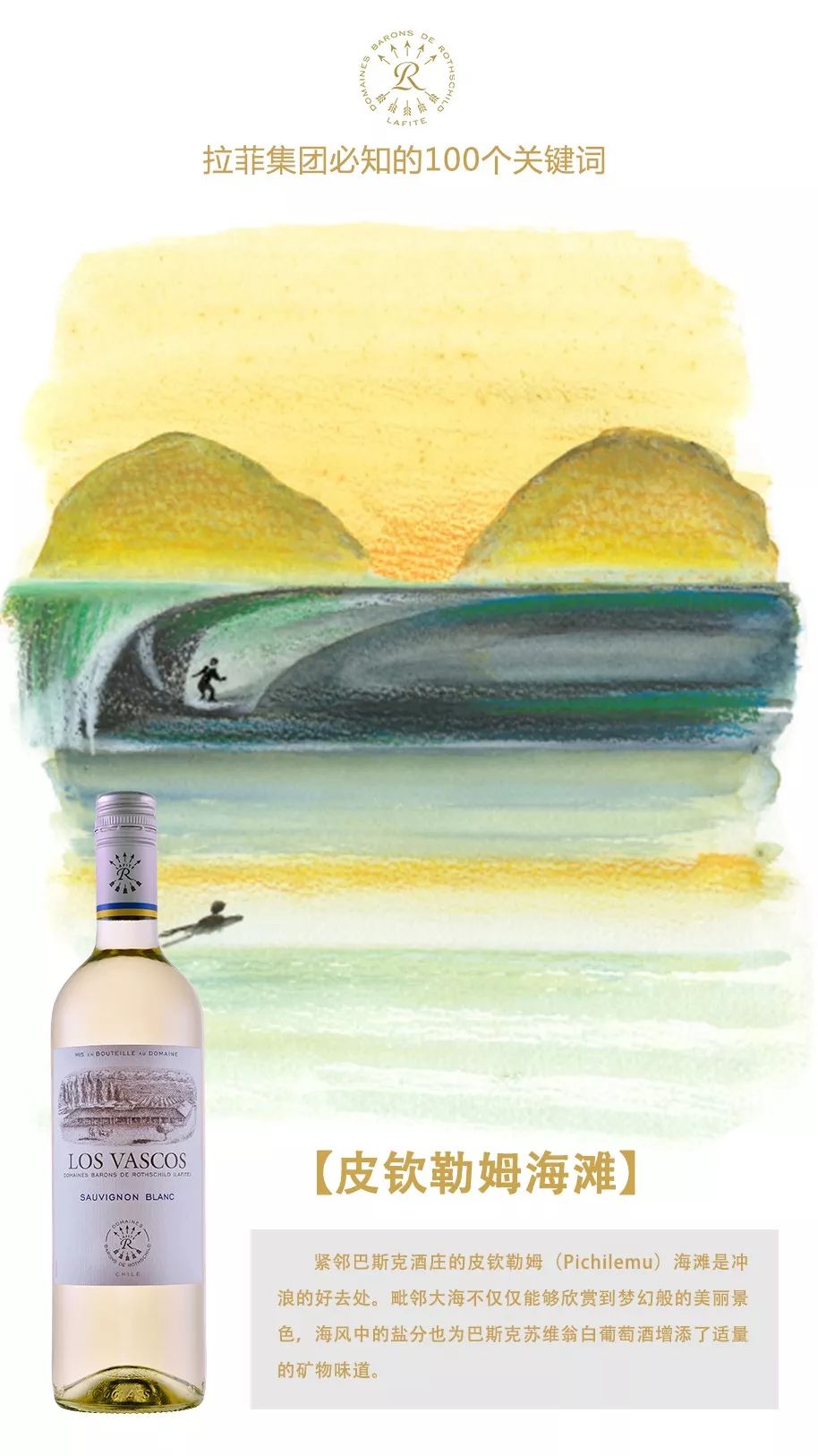 海风中的盐分为巴斯克苏维翁白葡萄酒(Los Vascos Sauvignon Blanc)的热带水果气息增添了适量的矿物味道,冰镇之后饮用,带来的美妙感受堪比“冲浪”!