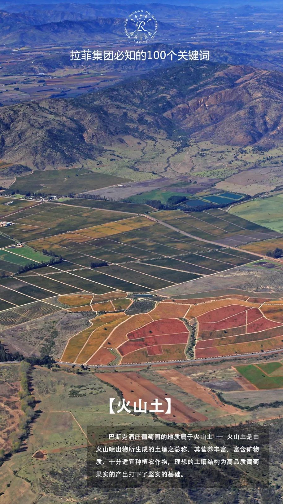 火山土是由火山喷出物所生成的土壤之总称,其营养丰富,富含矿物质,十分适宜种植农作物。巴斯克酒庄葡萄园的地质正属于火山土,由粘土砂和花岗岩风化粗沙构成,理想的土壤结构为高品质葡萄果实的产出打下了坚实的基础。30年前,拉菲罗斯柴尔德集团跨出法国,在智利收购酒庄,旨在通过深入研究智利别具特点的土壤、气候而酿造出具有当地风情的美酒,而火山土则助力了这一心愿的实现。
