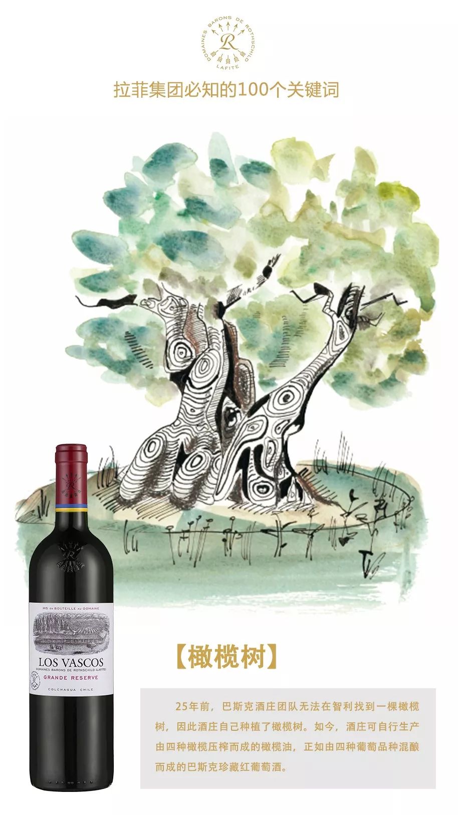 目前,酒庄生产的橄榄油由四种橄榄压榨而成,正如巴斯克珍藏红葡萄酒(Los Vascos Grande Reserve)由四种葡萄品种混酿而成:赤霞珠、佳美娜、西哈及视具体年份而加入的品丽珠。