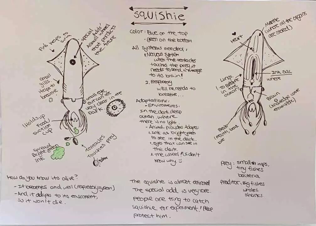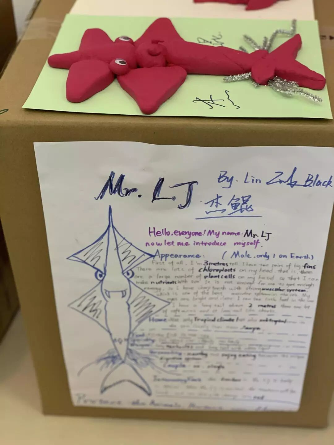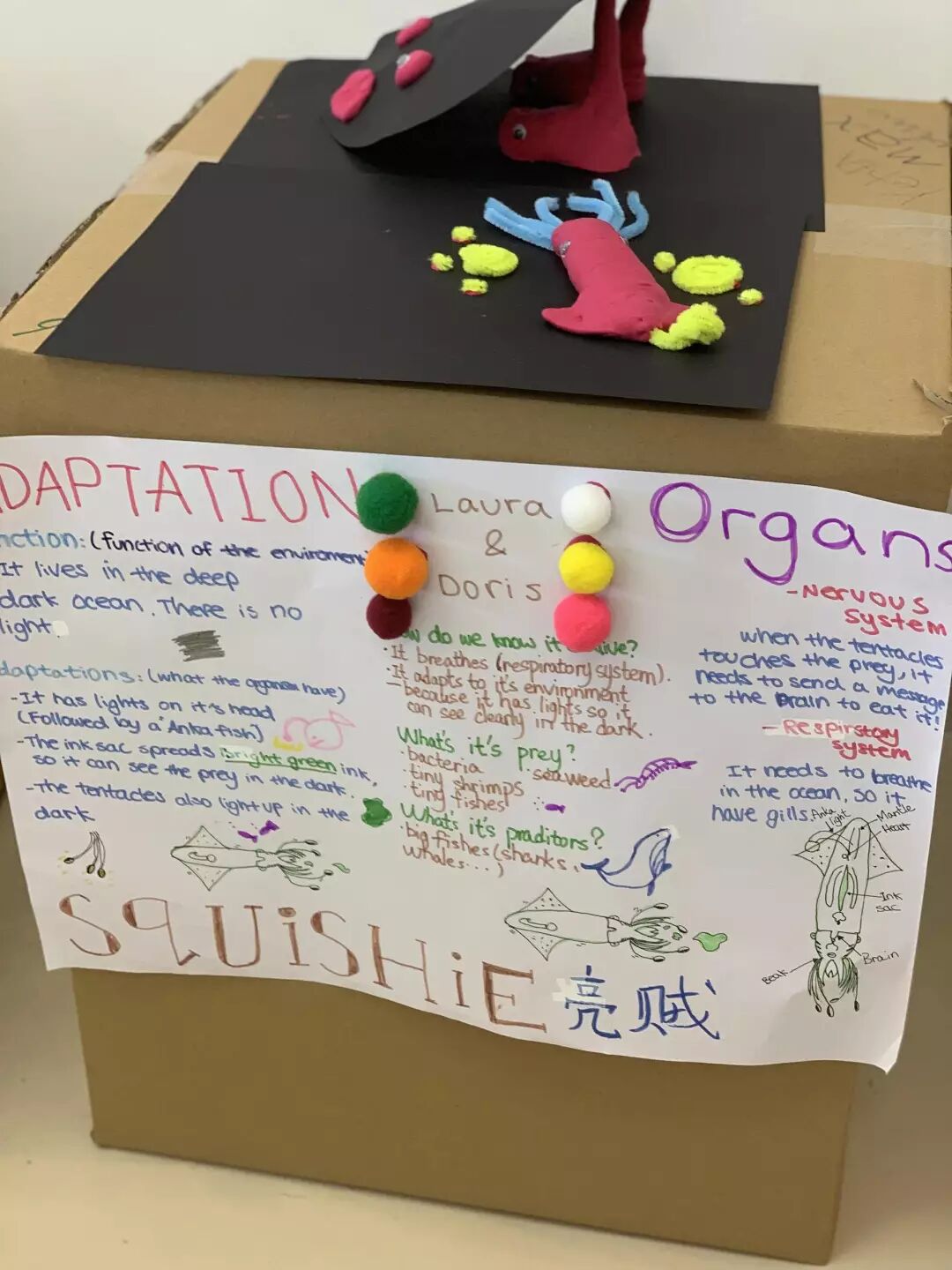 小米童鞋从海南三亚冬令营回来,觉得自己在美国科学老师课上的成果展示做的不够完美,大年初一就把这个作业重新做了一遍,把自己设计创造的这个动物形象更完善了,生物器官系统也解释的更清晰。这是要多么喜欢才会这样做啊。