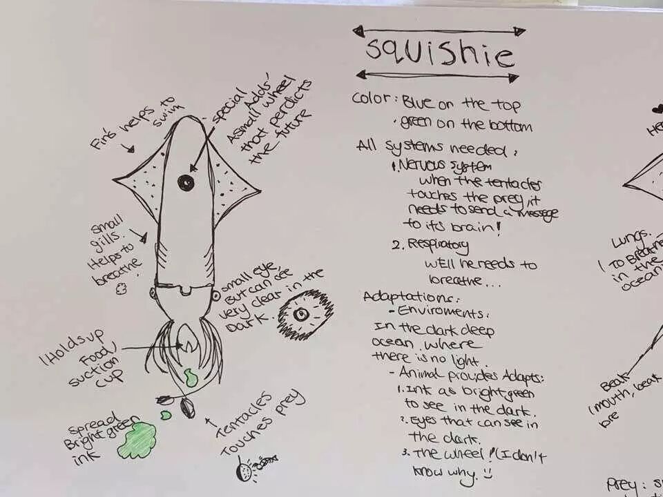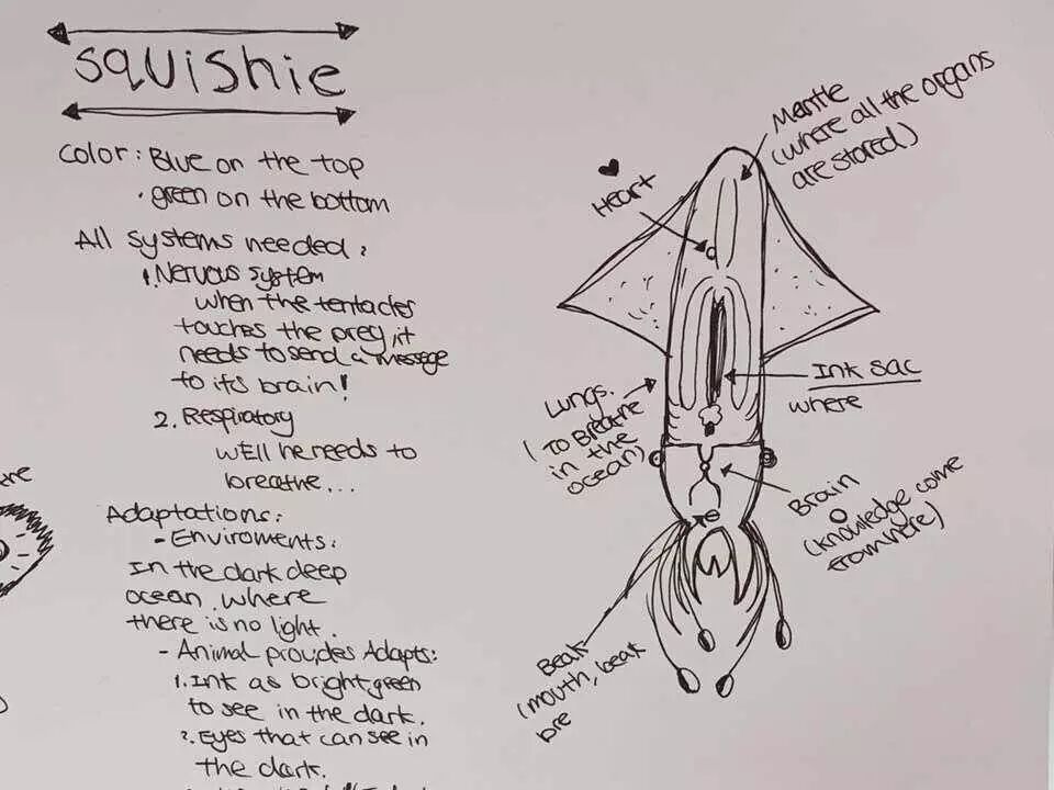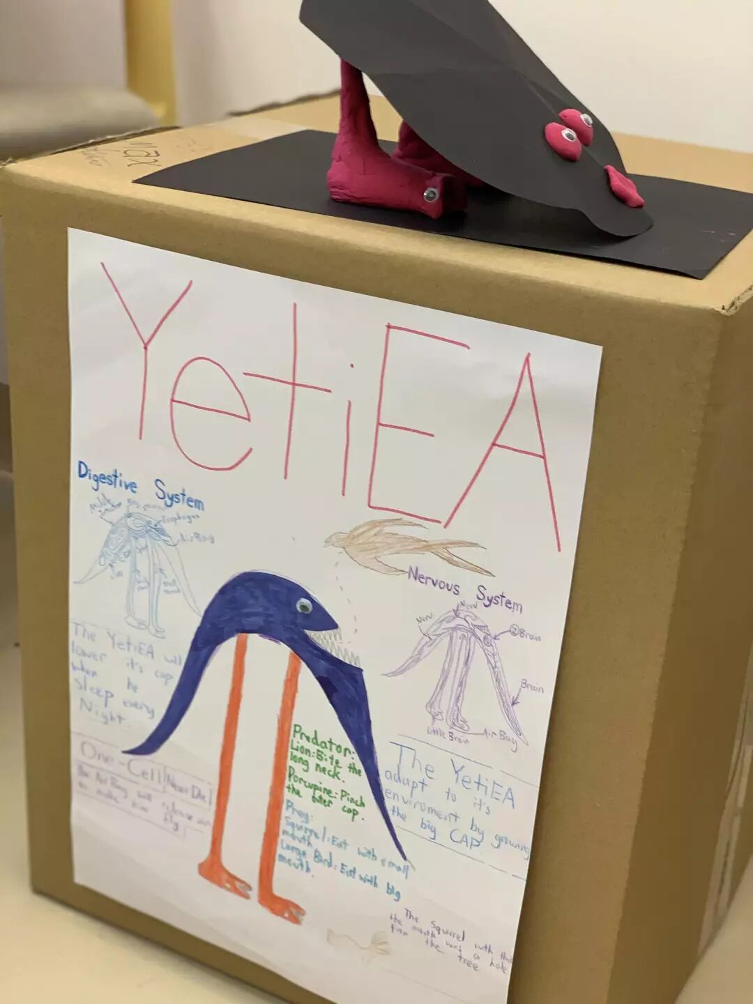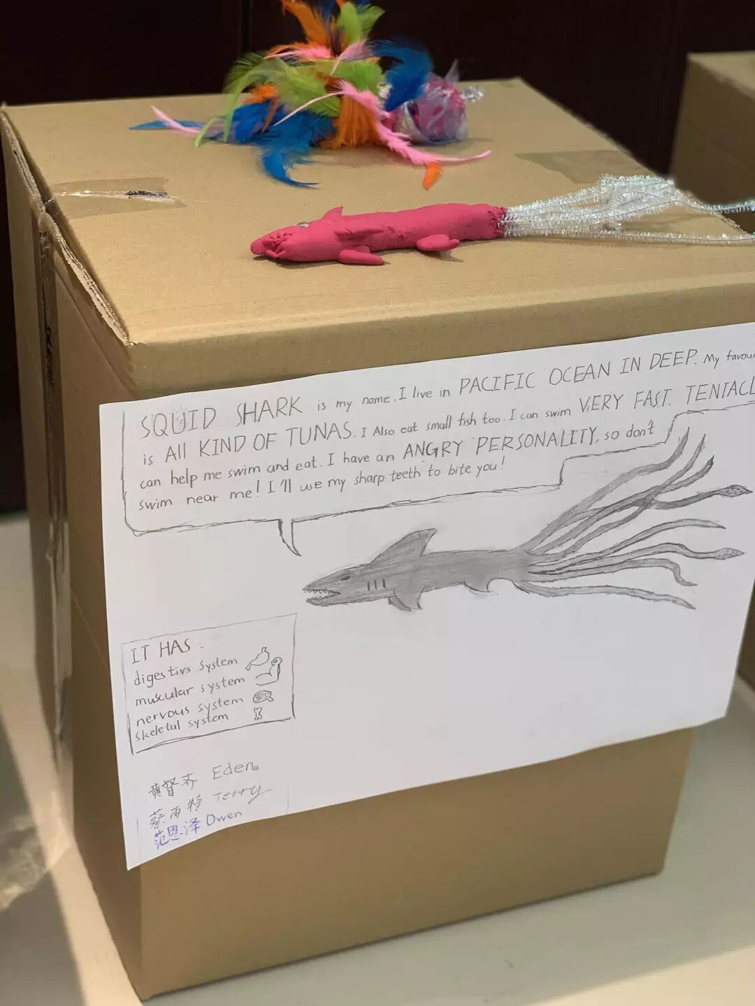 小米童鞋从海南三亚冬令营回来,觉得自己在美国科学老师课上的成果展示做的不够完美,大年初一就把这个作业重新做了一遍,把自己设计创造的这个动物形象更完善了,生物器官系统也解释的更清晰。这是要多么喜欢才会这样做啊。