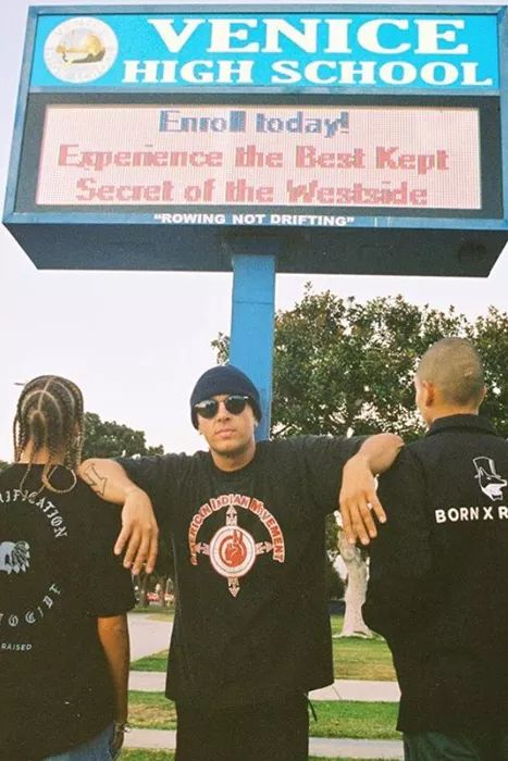 原住民根源更带来精神意识上的启发,这也体现在了品牌的创作中。「在我儿时的一个夏天,在印第安纳瓦霍人(Navajo)居住的区域看到四处的 ‘Relocation is Genocide(迁移造成灭绝种族)’ 标语。数年后,当我体验到绅士化在 Venice 发生时,引起了我的共鸣」,为了表明原住民血统的骄傲与荣耀,在 2017 秋季系列中 BornxRaised 拍摄了印第安少年,上述标语也贯穿了整个系列。