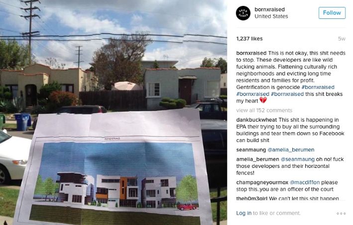 Spanto 和 2Tone,BornxRaised 的创始人,他们就经常在系列背后引用家乡 Venice 被绅士化(中产阶层化)后的思考。他们曾这样说道,「我觉得我们的文化被偷走了,我们被驱逐出自己的社区。BornxRaised 是我们文化和传统得以延续的一种方式。我们的祖父母在这里上学、成家,家族在这里生活了近 90 年,见证这里的变化,经历了内乱,现在我们想讲述这里真实的过去和现在。很多人为自己从未真正参与过的文化大声疾呼,我们不这样。」