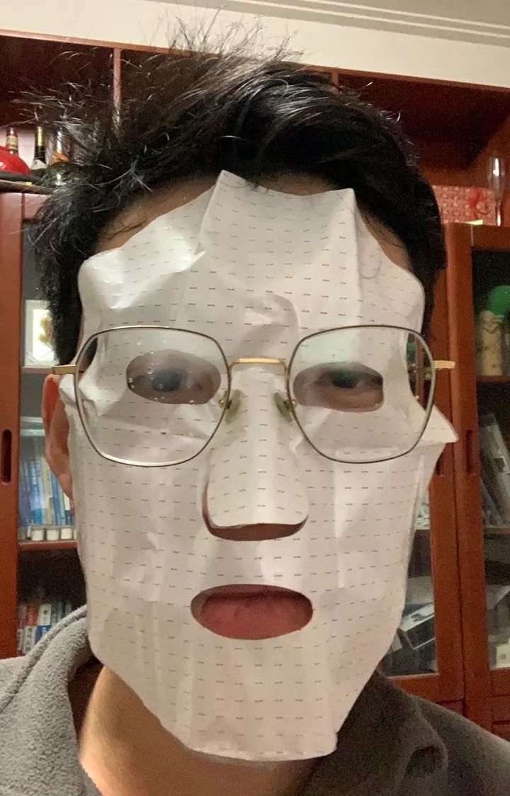 第一次敷面膜不知道有两层 需要去掉一层 还高兴的在群里秀。