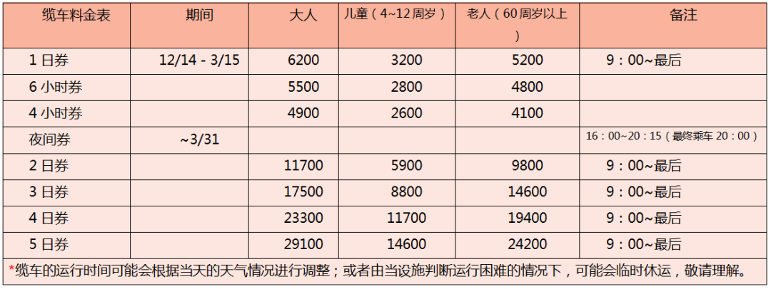 登山缆车参考价格一览