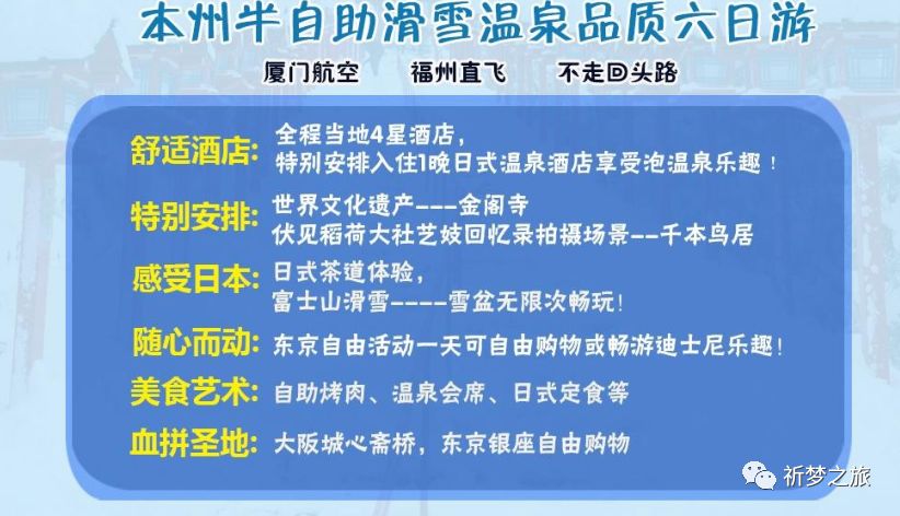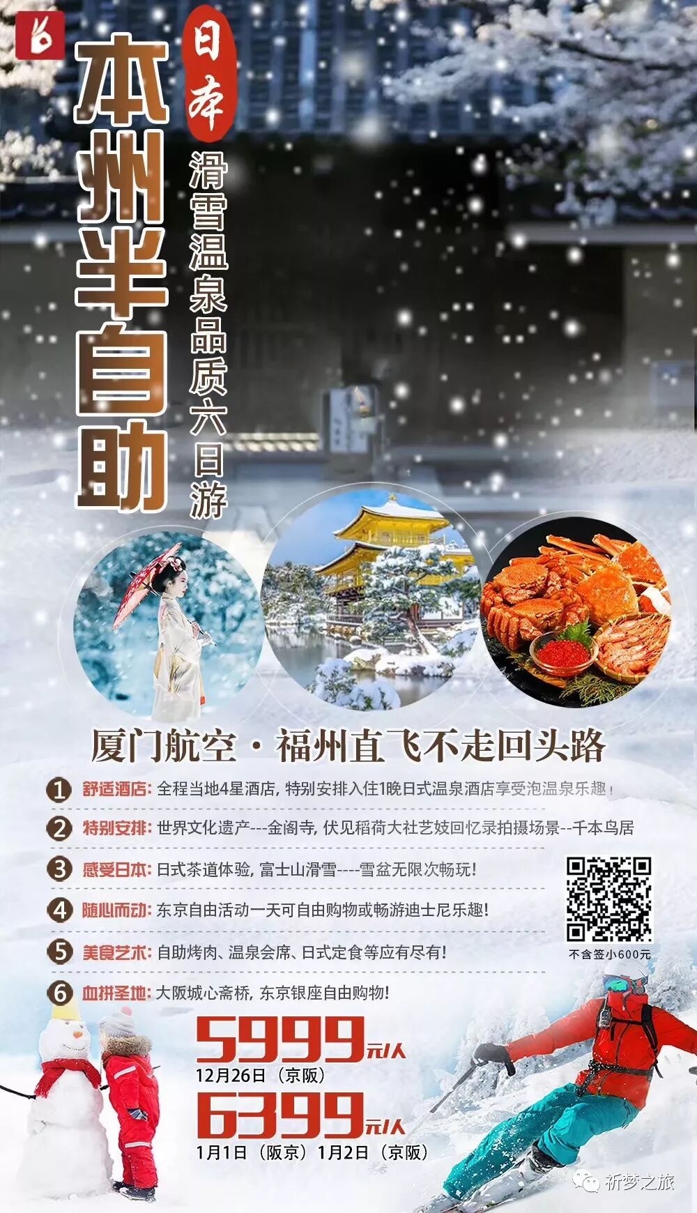 5999元/人12月26日本州半自助滑雪温泉品质6日游