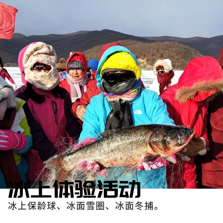 赠送三:镜泊湖独家冰上体验活动:冰上保龄球、冰面雪圈、冰面冬捕(1月1日-2月10日结冰安全期安排,其他时间替换为探访朝鲜民俗村,学习制作朝鲜辣白菜、打糕,穿朝鲜民族服装照相)
